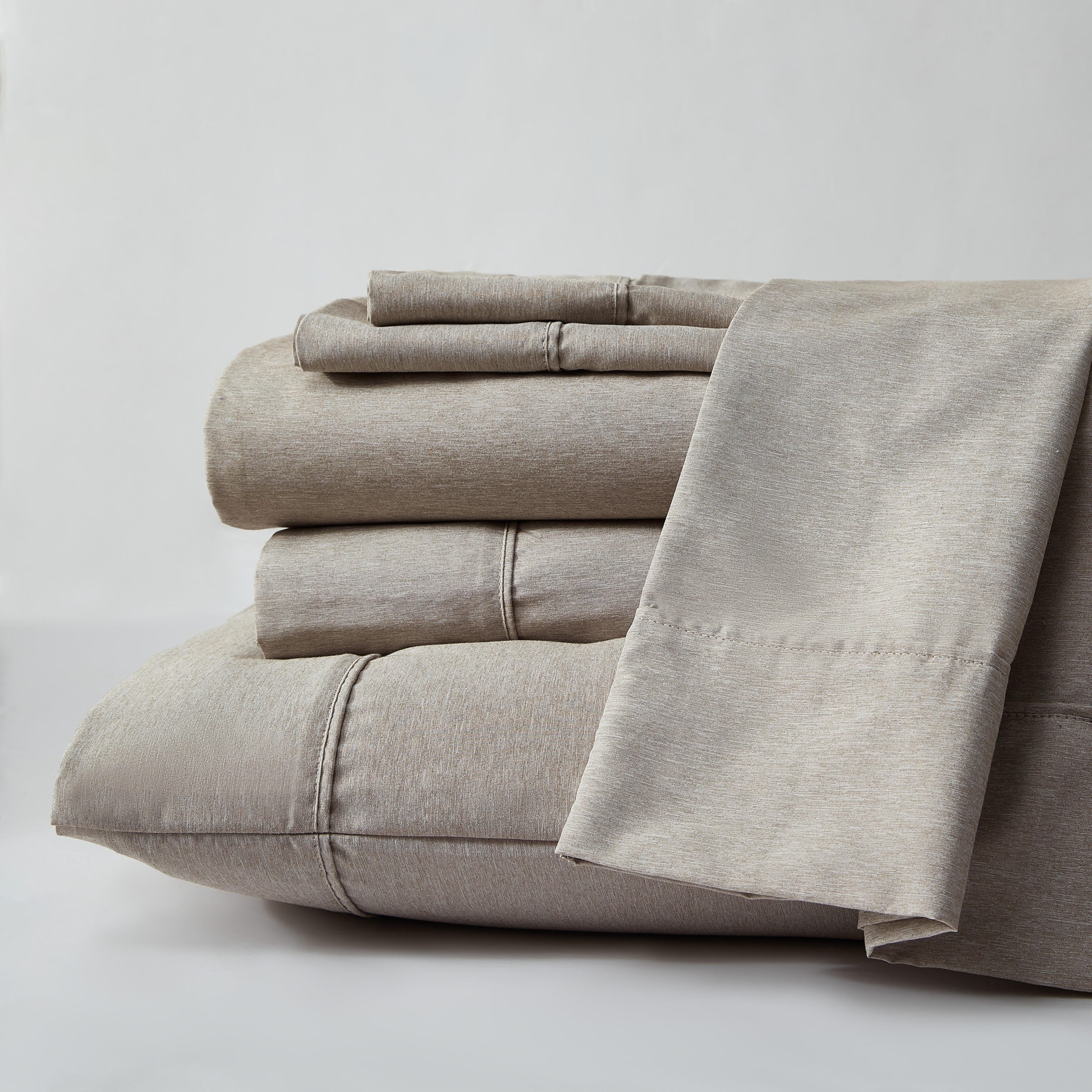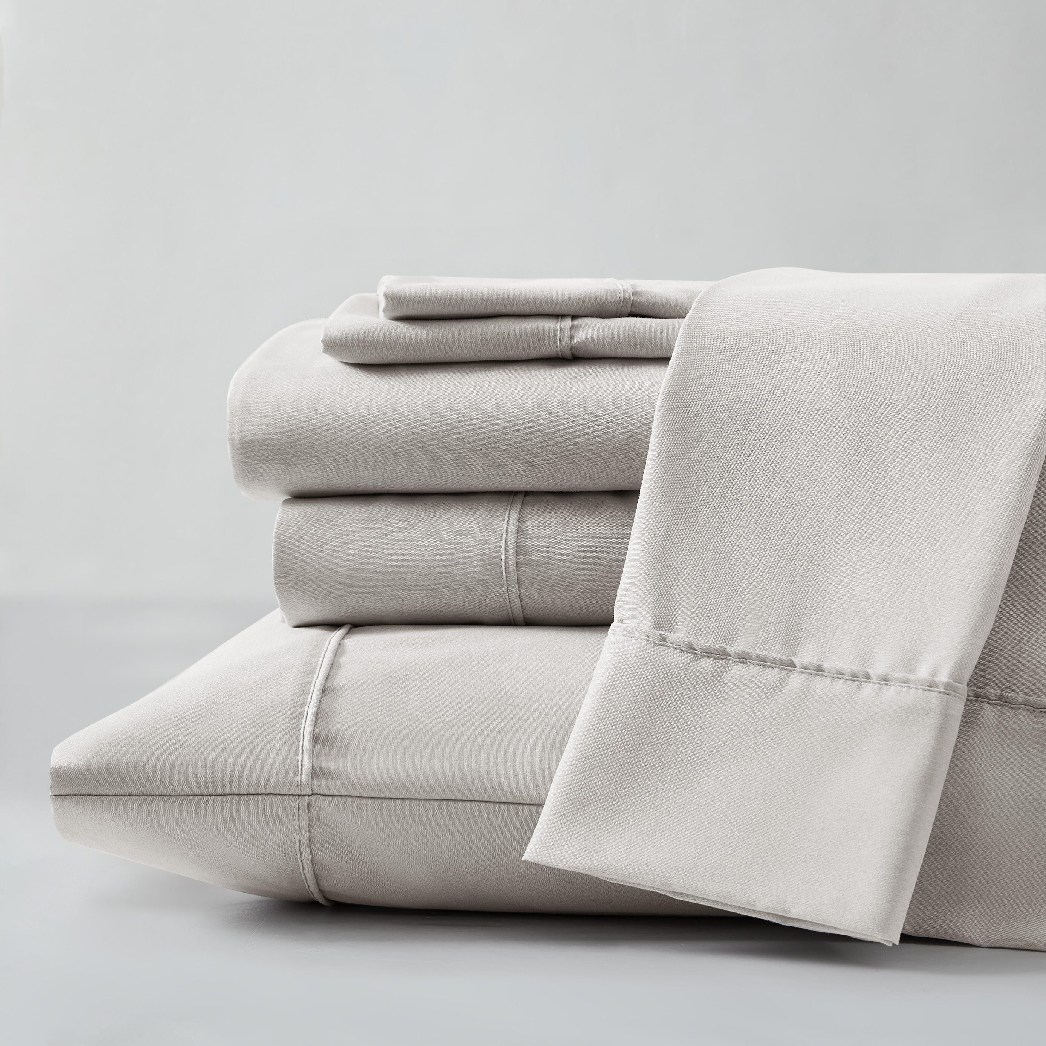 Update your bedding ensemble with the new Cationic Solid Sheet Set from Kenneth Cole. Available in dark grey, medium brown, medium grey and beige, these super soft sheets offer sophistication and supreme comfort for a better night’s sleep. These super soft sheets are wrinkle resistant, Oeko-Tex Certified and machine washable for easy care. The included fully elasticized fitted sheet prevents slipping from your mattress and ensure a perfect fit. The deep pocket fitted sheet fits mattress up to 18" (up to 15" for twin size). Set includes one flat sheet, one fitted and two pillowcases (one for twin size).