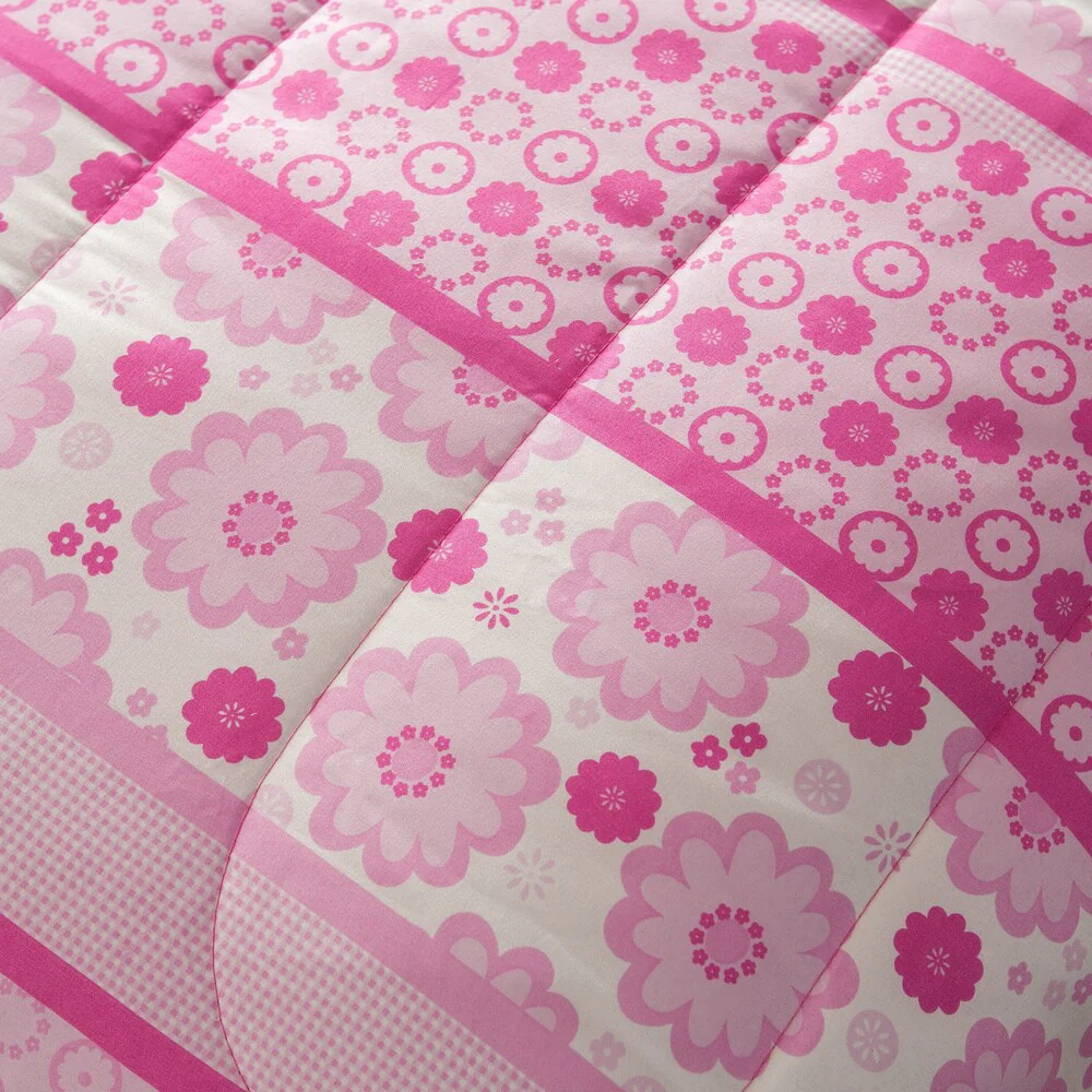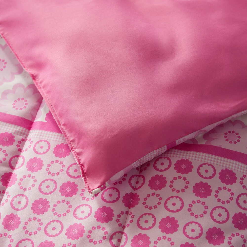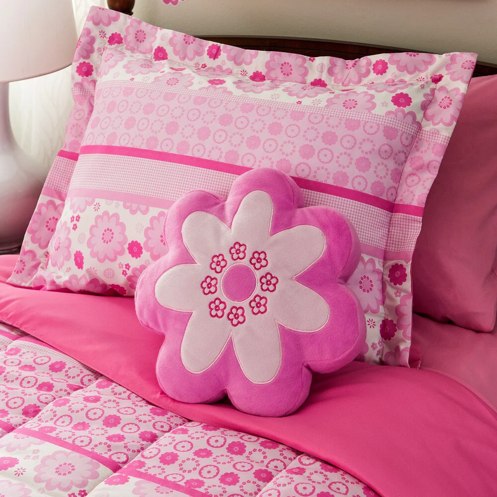 Turn your child’s bedroom into a garden with this delightful comforter set and shaped fleece decorative pillow of pink flowers. This machine washable bedding set is made of brushed polyester, which is comfortable as well as easy care and wrinkle-resistant.