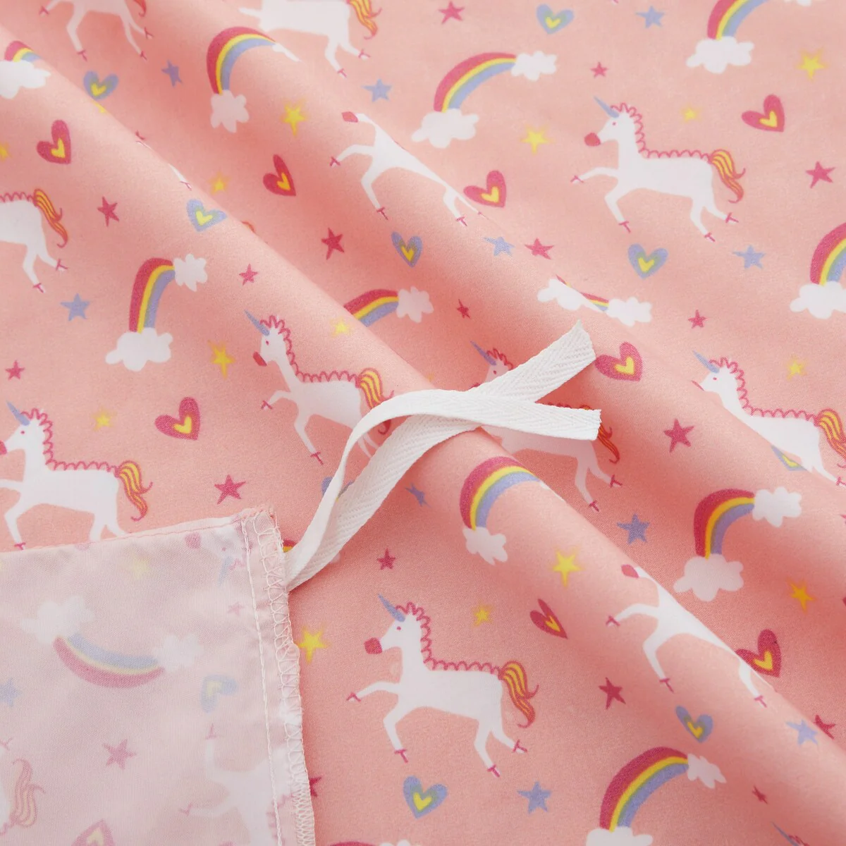Kids Girls Printed 600 Thread Count Cotton Blend Percale Duvet Cover Fitted Sheet Ensemble Bedding Set, Pink Unicorn Rainbow
