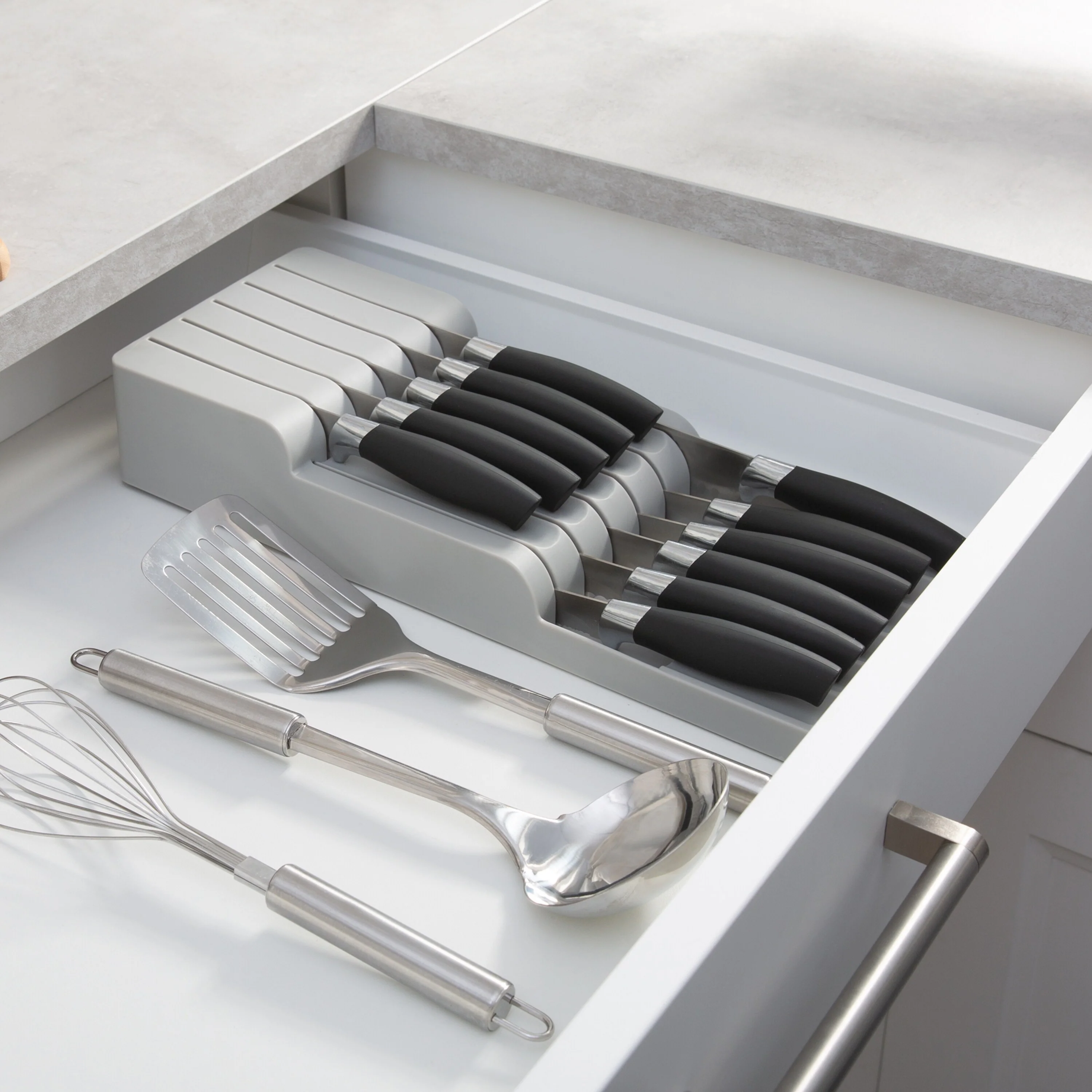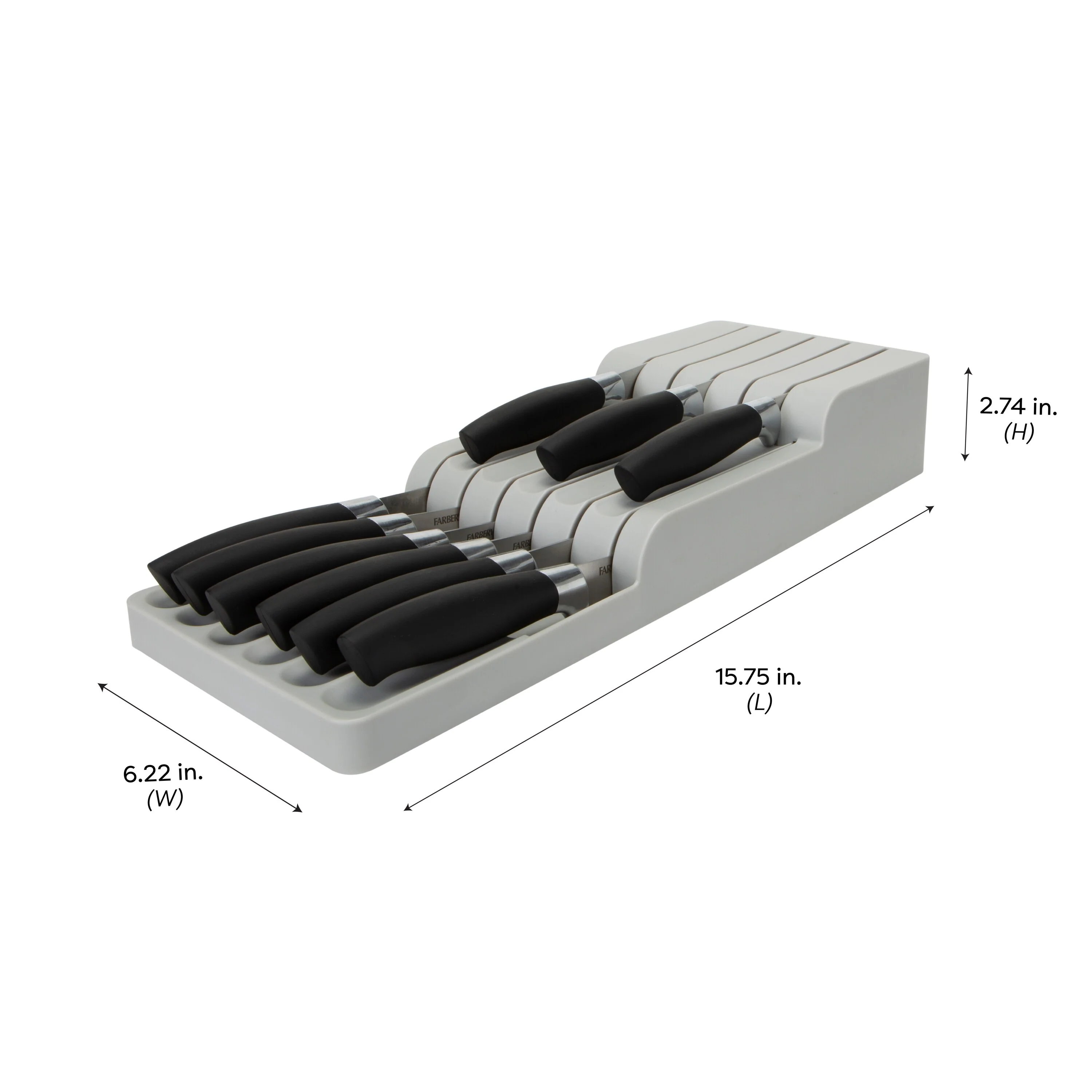 Kitchen Details 2 Tier in Drawer Knife Organizer in Grey – 15.75"x 6.2"x 2.75"