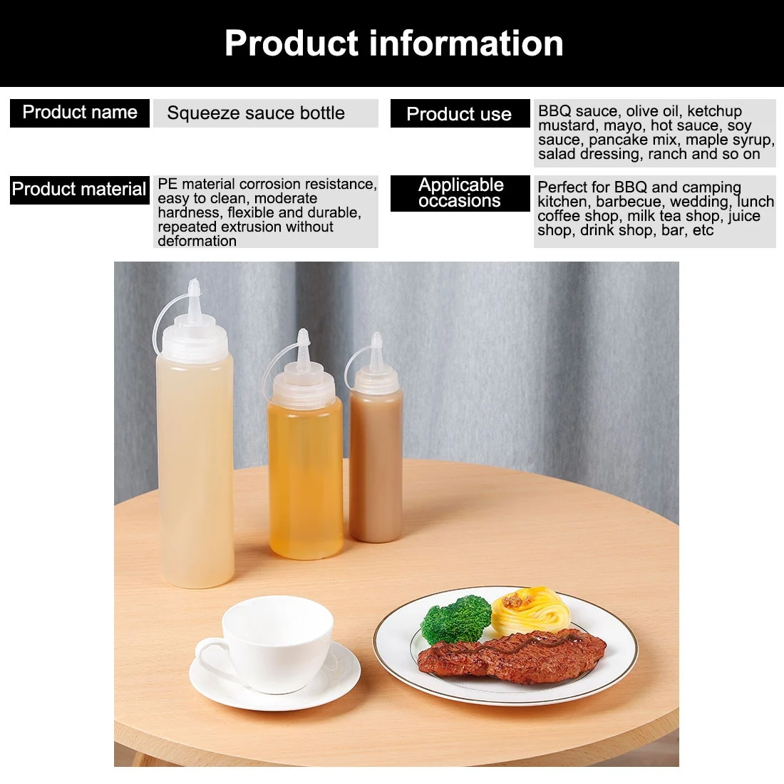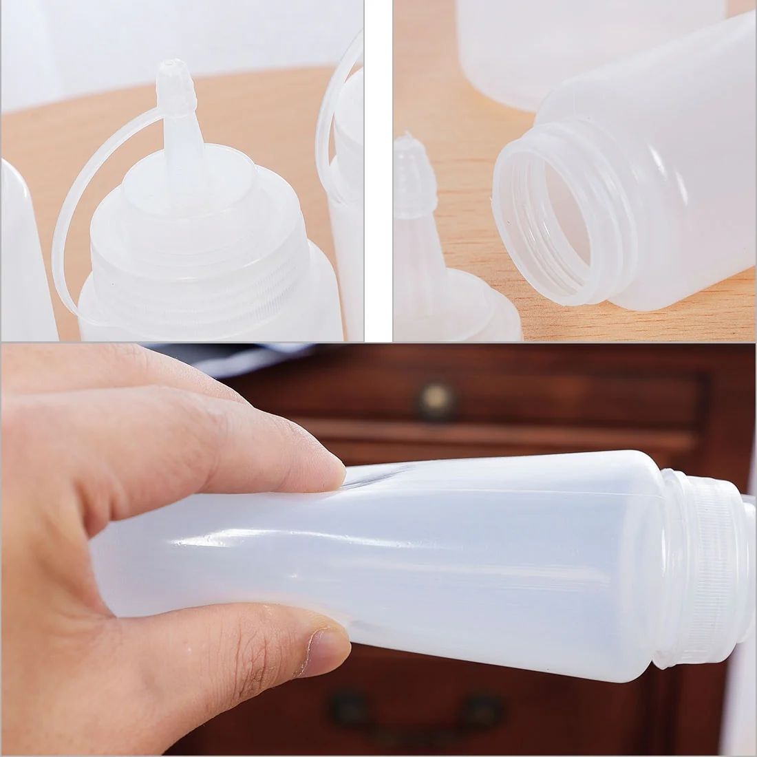 1. Our squeeze bottles are made of PE, handy and easy to use. The smooth surface will give you an enjoyable holding feeling. Not fragile will serve you a long time than a glass container.