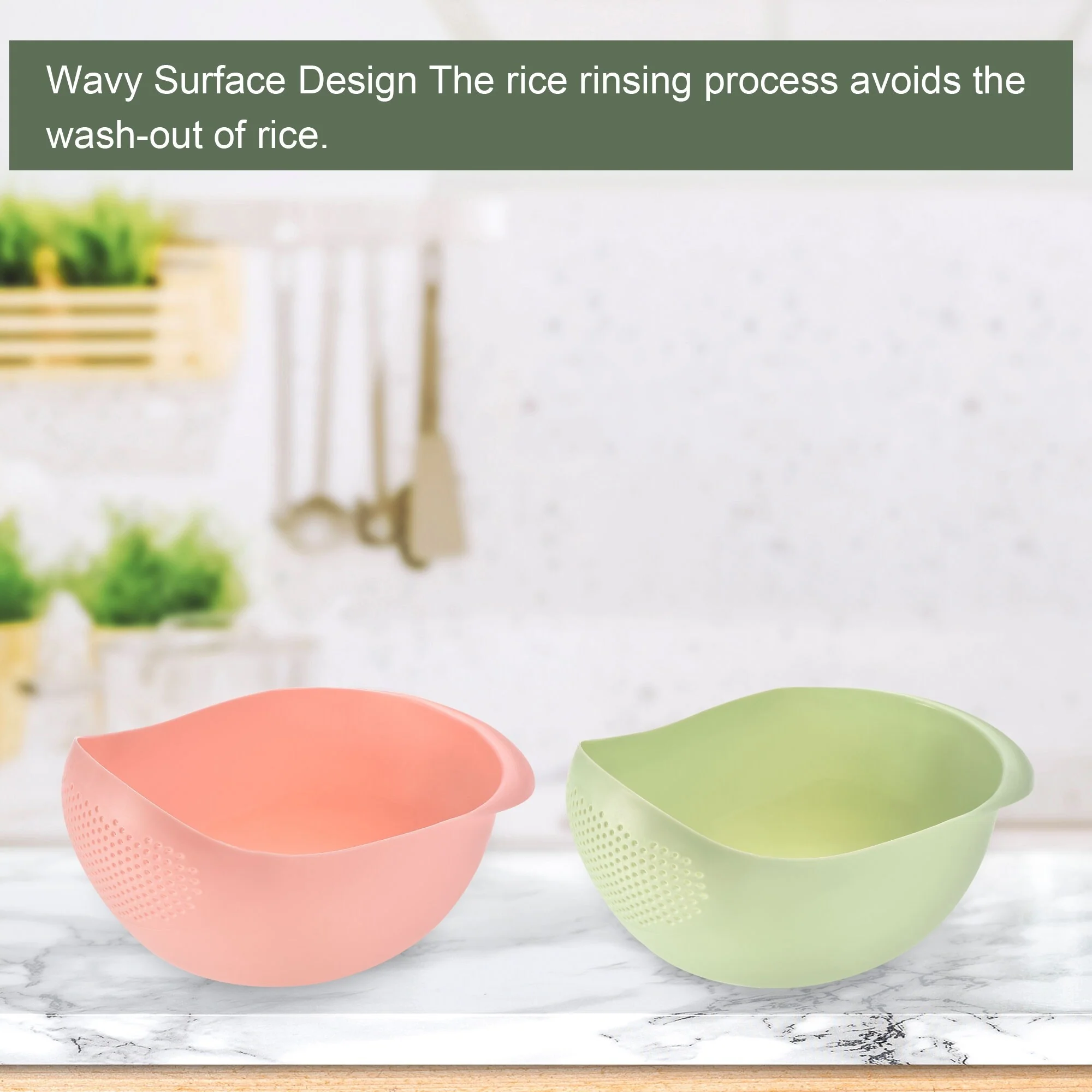Make your kitchen tasks easier and more convenient with this Kitchen Rice Washing Strainer Fruit Vegetable Container Drain Basket. This high-quality strainer is made of thick PP material, ensuring durability and longevity. The fine holes are evenly distributed, allowing for efficient rice washing and quick draining. With a drain screen on the side, water can be easily drained, making your vegetable washing process more convenient and faster. This versatile strainer is not only perfect for washing rice but also for washing vegetables, fruits, grains, and other foods. Its multi-purpose design allows for vegetable washing, drainage, filtration, and storage, making cooking easier and faster. The strainer comes in a vibrant green and pink color combination, adding a pop of color to your kitchen. Choose this Rice Strainer Bowl for its practicality, convenience, and superior quality.