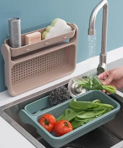 Vegetable fruit washing basket– it can also help you quickly drain and keep dry small kitchen accessories, such as sponges and more.