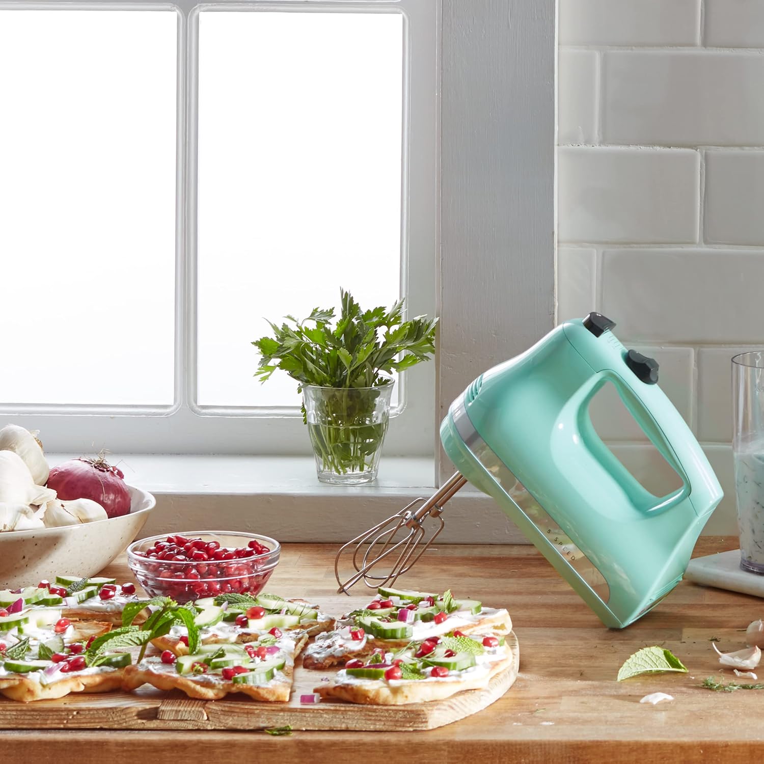 Compact, lightweight and great for your everyday mixing needs. This hand mixer features 5 speeds, 2 Turbo Beater Accessories and the power and control to mix up your favorite cookie dough, mashed potatoes and so much more. Slowly stir in chunky ingredients, like nuts or chocolate chips, at speed one or whip egg whites or heavy cream at speed five.