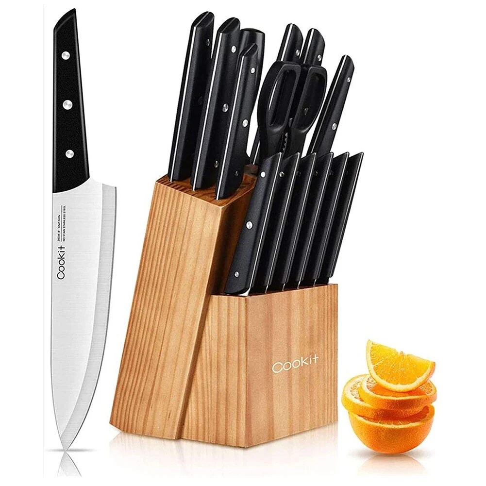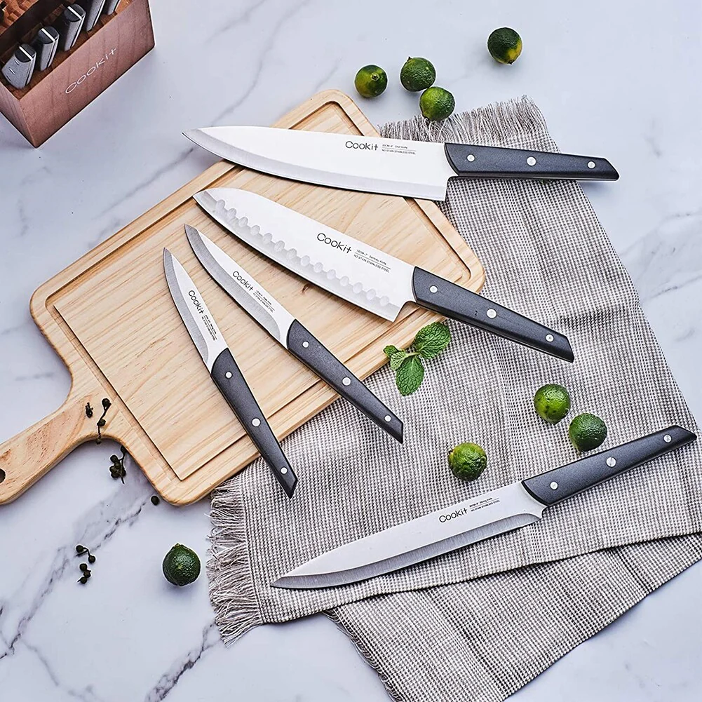 Every knife is forged with carefully hand-polishing and precise tempering ,the edges of the sharp knives are hand sharpened to 16-18°per side for extreme cutting experience and long-lasting sharpness, as the professional knife set.