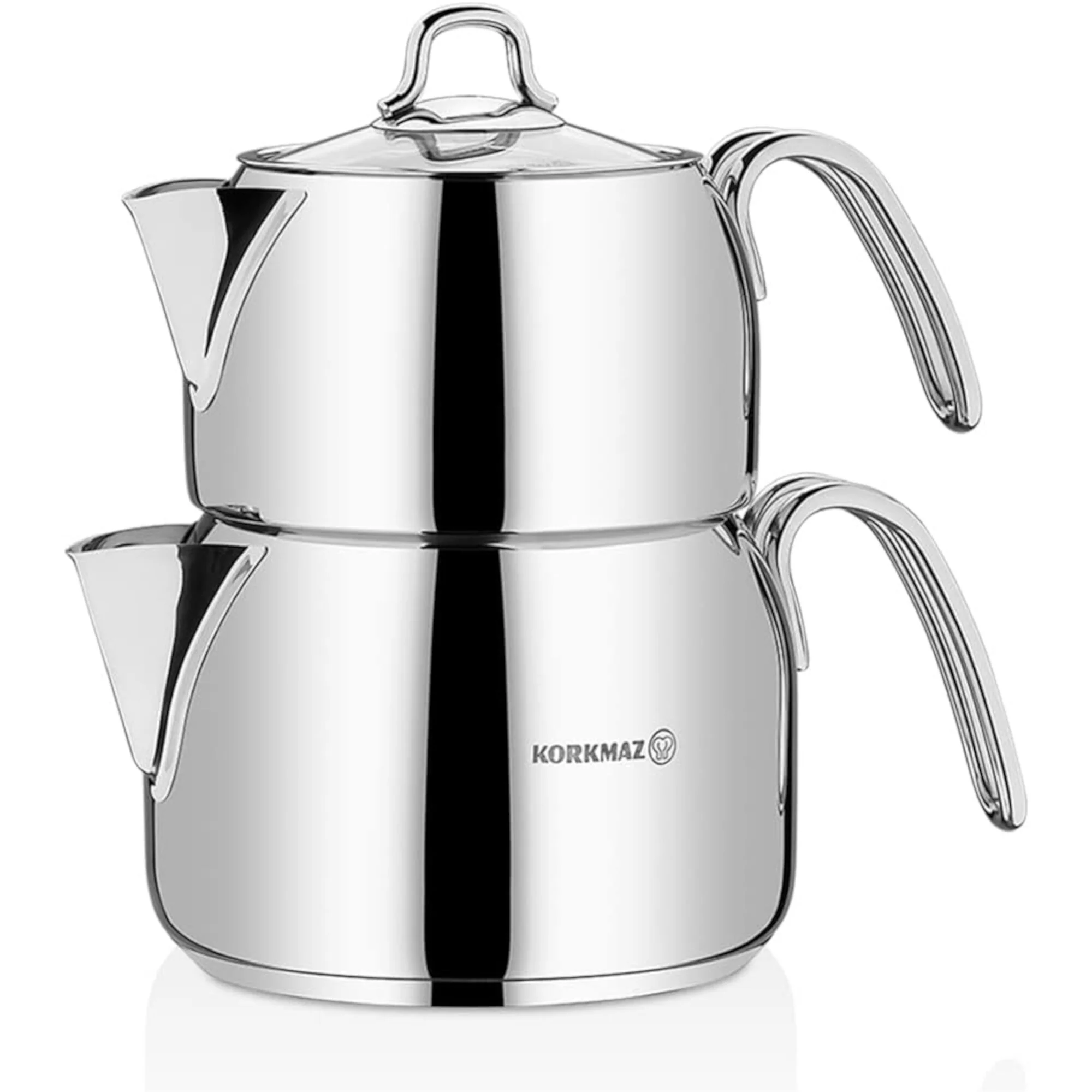 A cup of tea is always a fresh breath of air. It is an aromatic beverage that wakes up your senses to start the day to the end. Bringing a new experience to deeply enjoy the powerful benefits tasting the rich flavor of green tea leaves/beans, Korkmaz introduces Turkish teapots, a two stacked kettles that blend your kitchen setting with traditional middle east touch. The bottom kettle is for boiling water while the upper one is for tea brew.