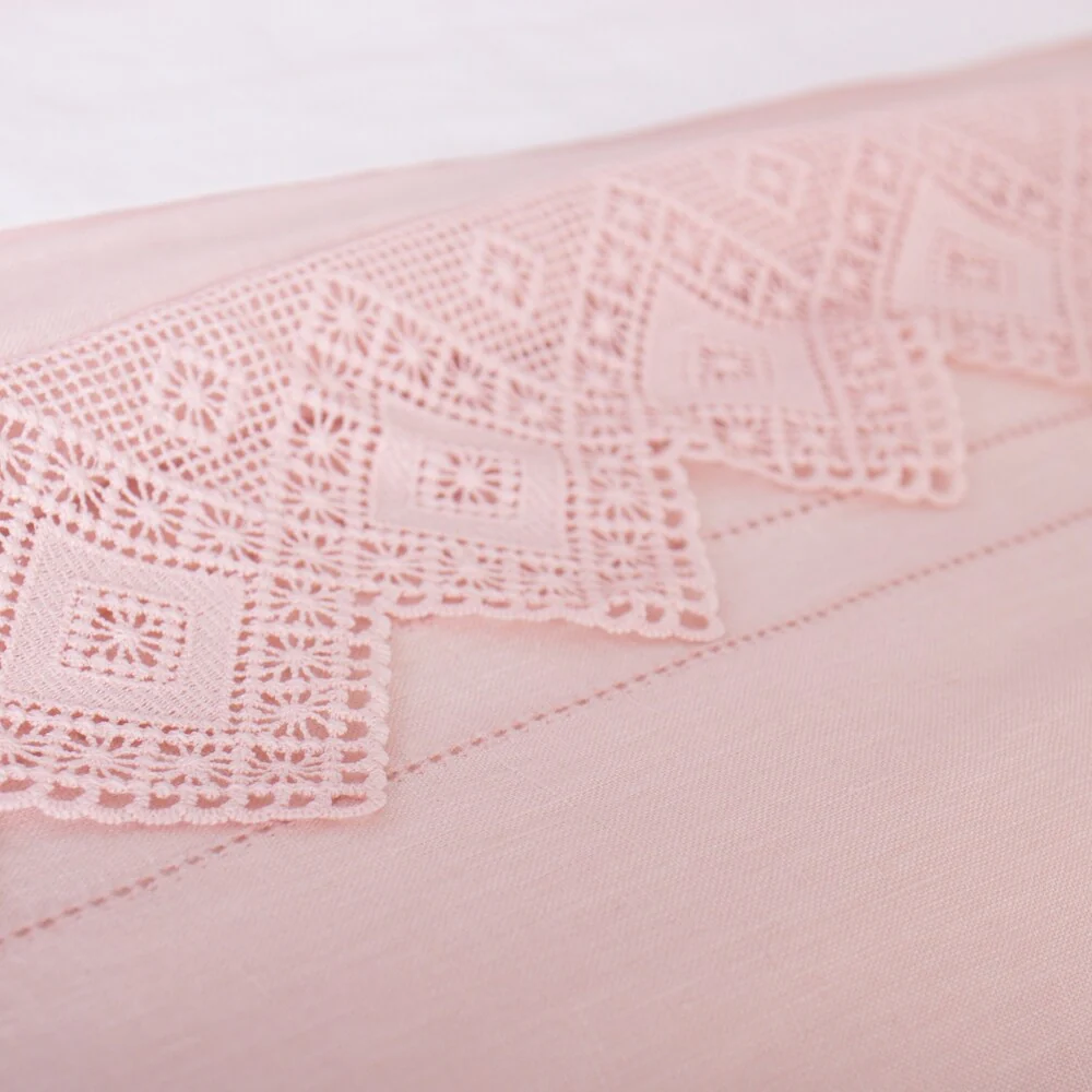 Points of delicate lace surround this linen duvet cover for a fresh, vintage vibe. Three rows of hem stitch run along the foot of the bed and side of each sham for additional subtle detail.Self backed with hidden button closure. Fabric Content:100% LinenCare Instructions: Machine Wash Cold, No Bleach. Gentle Cycle. Tumble Dry Low or Flat or Line Dry. Warm Iron if neededWe make every effort to display color accurately in our images. However, digital screens and monitors may display color differently. We cannot be responsible for color variations between our product and your screen.