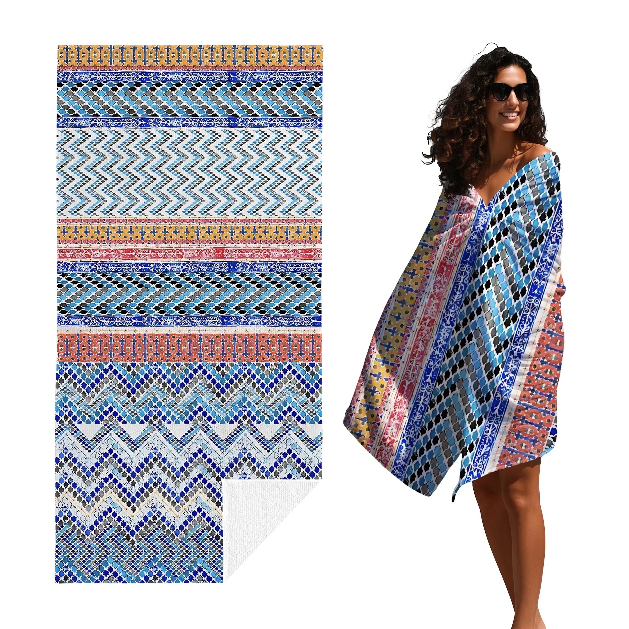VERSATILE: This oversized beach towel is not only a great accessory for your beach vacation but can also be used as a wrap, hair towel, or beach blanket. Its versatility makes it perfect for use at the beach, cruises,swimming pool, gym, sauna, hotel, yoga, camping, and more.
