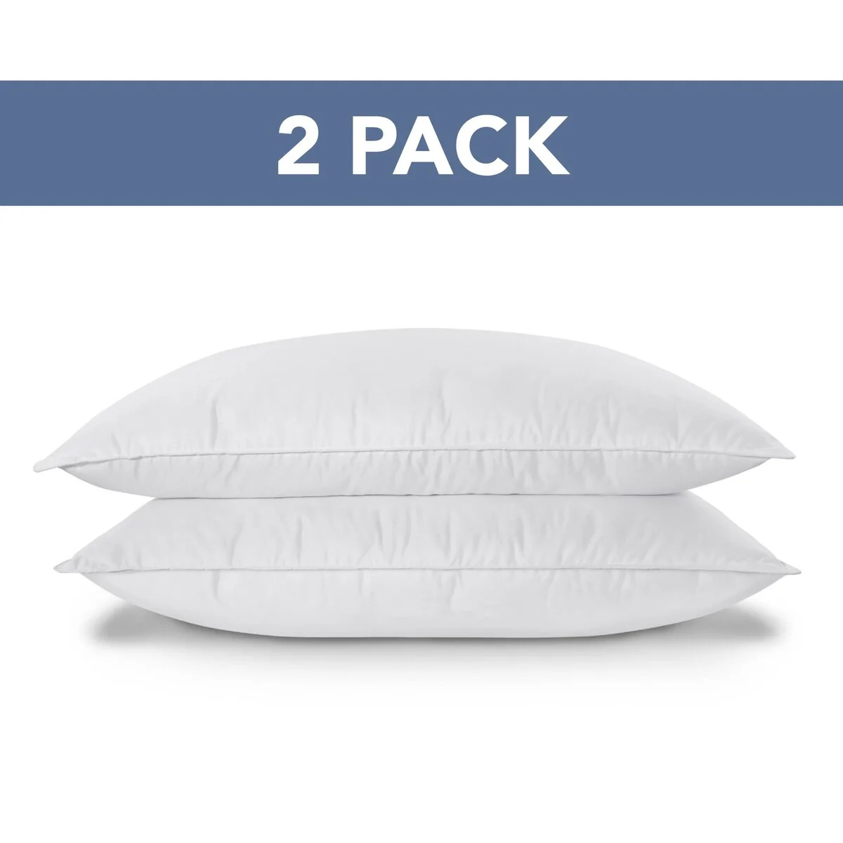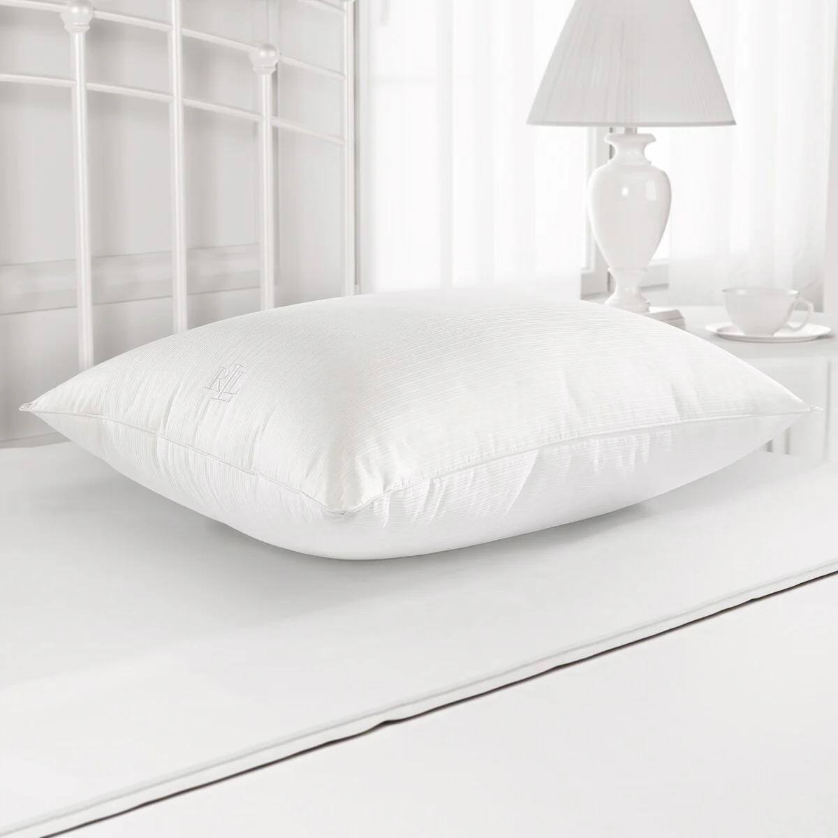 The Lauren Ralph Lauren Won’t Go Flat 2 pack of Bed Pillows, in white, are designed to not flatten over time. They feature a clean and crisp 100% cotton fabric and have a monogram logo. The pillows are filled with a comfort fiber surrounding a supportive foam core, providing both comfort and support while you sleep. Ideal for side sleepers. Spot clean only. Available in both Standard/Queen (Jumbo), 20" x 28", and King, 20" x 36", size pillows.