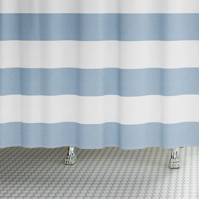 Enhance your bathroom’s ambiance with the Lavelle Shower Curtain. Featuring calming blue and white stripes on 100% brushed polyester, it combines stylish design with durability and a soft feel. Measuring 72×72 inches, this shower curtain fits most standard showers and bathtubs, ensuring complete coverage for a splash-free experience.