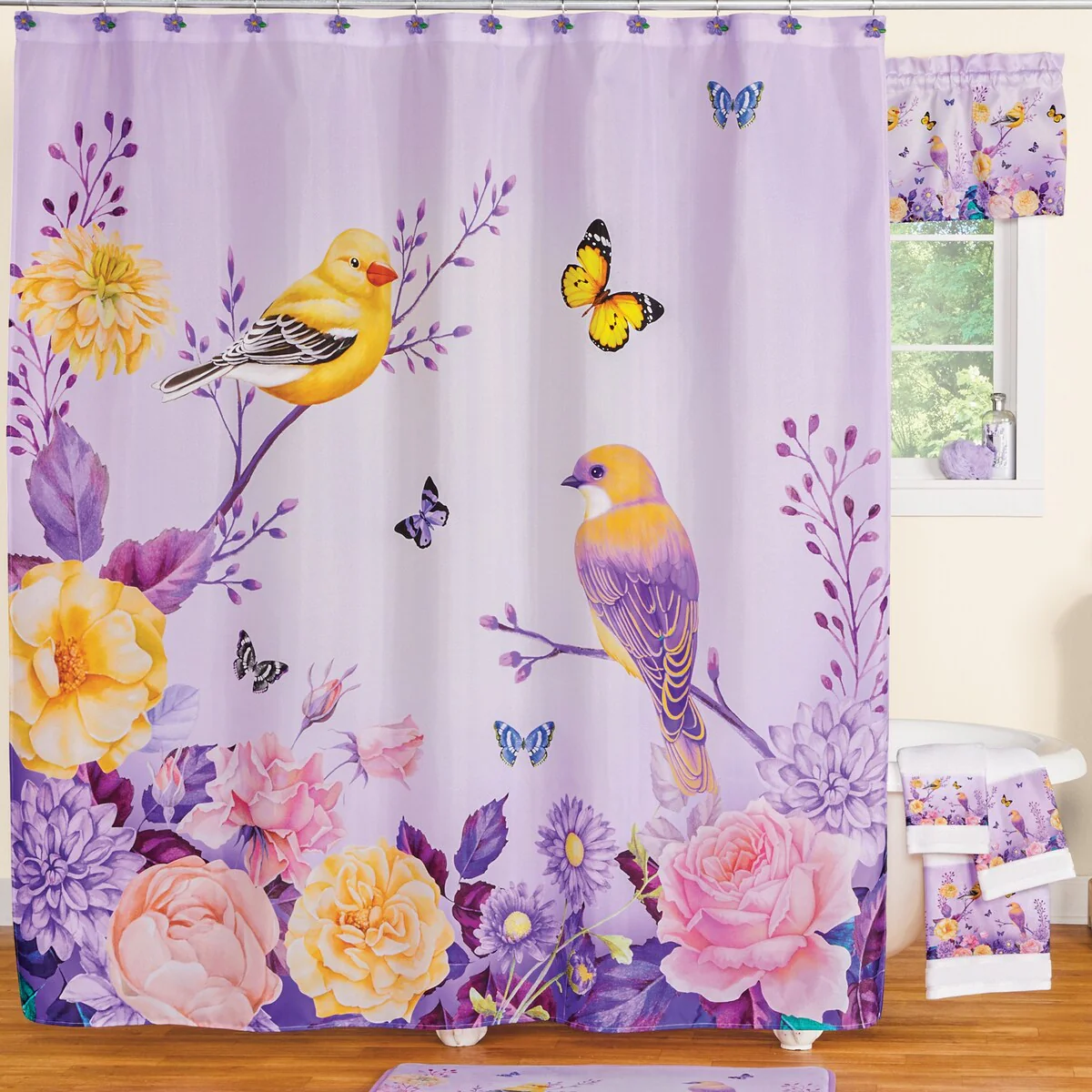 Lavender Birds and Flowers Bathroom Shower Curtain