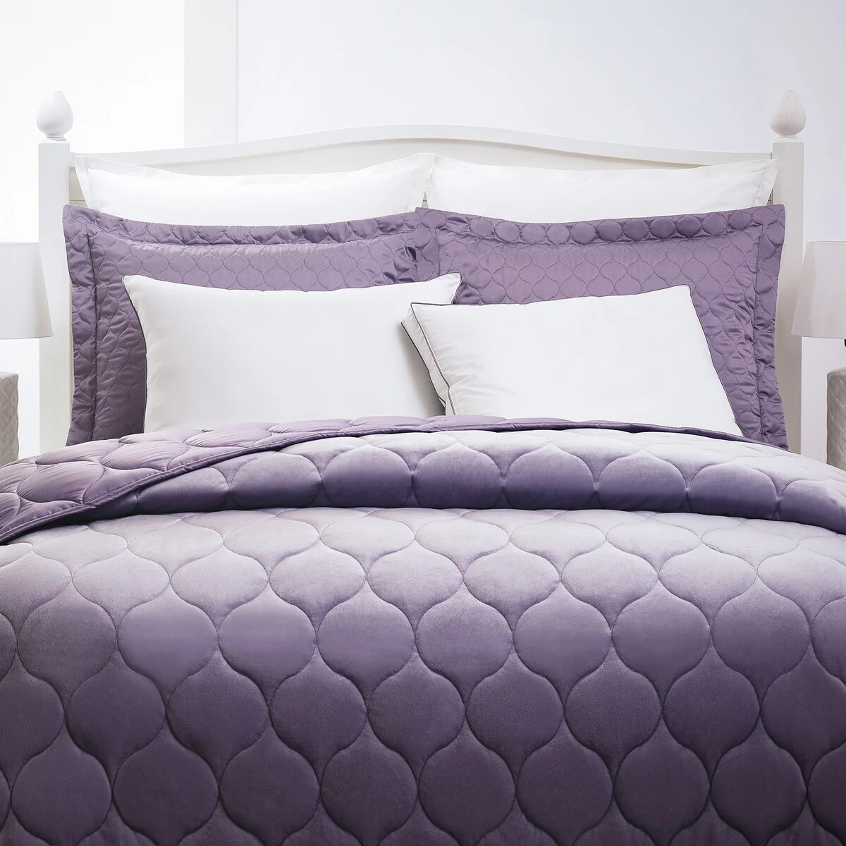 - Detailed with lavender satin piping