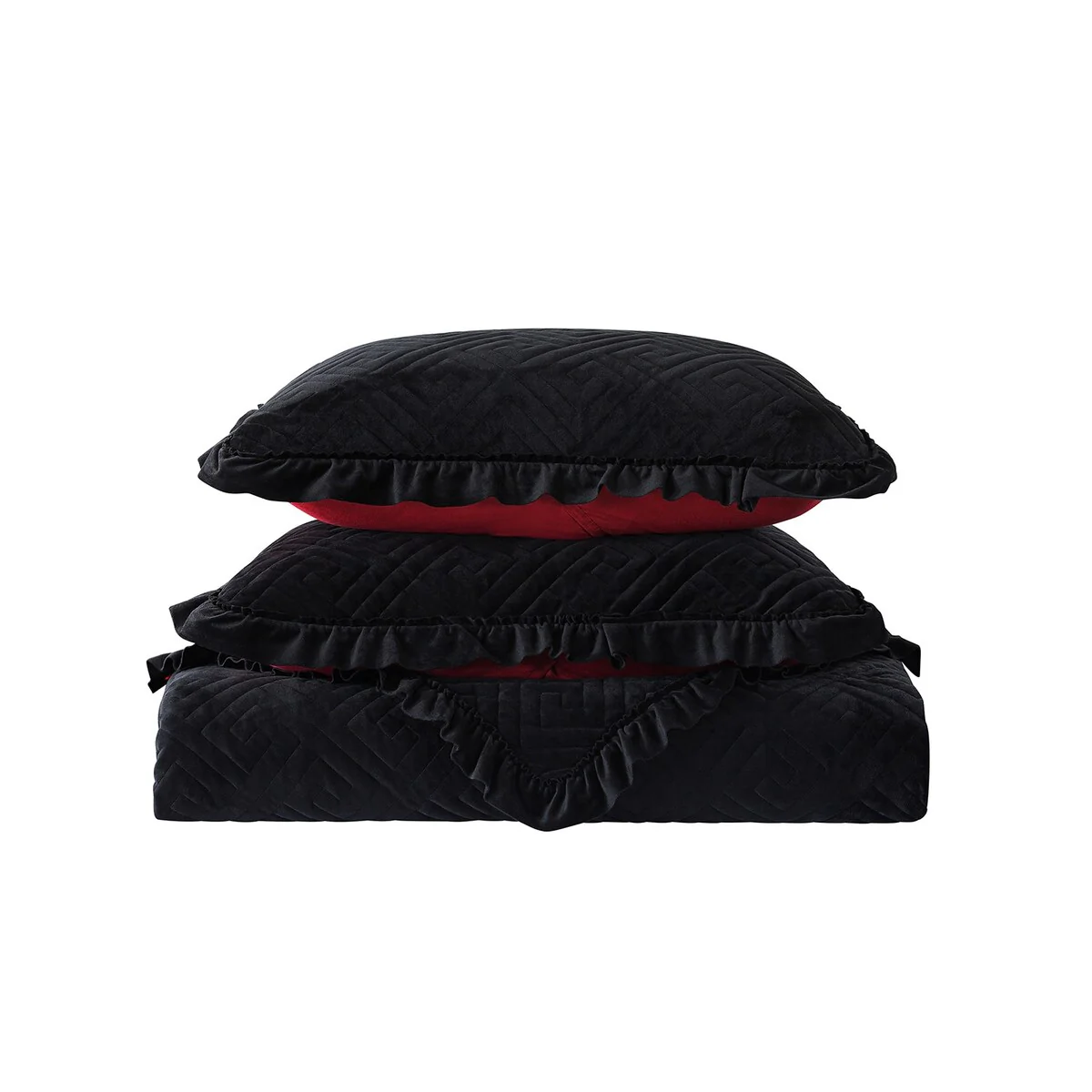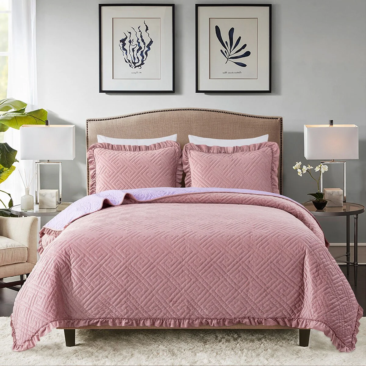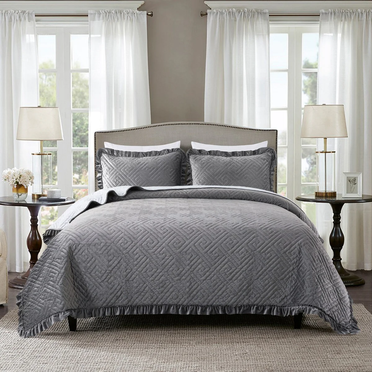 Indulge in the plush comfort of our Lavish Poly Velvet Quilt Set. OEKO-TEX certified and free of harmful substances, this set guarantees quality comfort and wellness. Our high-density quilting technique stitches together three layers of fabric, including a super soft velvet surface and down alternative filling for ultimate relaxation. With its superior moisture absorption capacity and breathability, our quilt set is perfect for year-round use. Choose from King, Queen, or Twin sizes to fit your bedding needs.