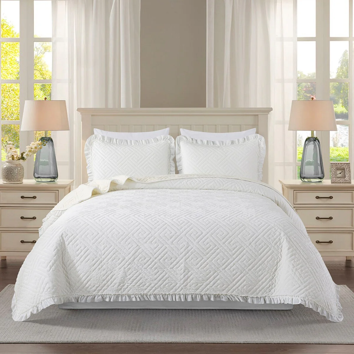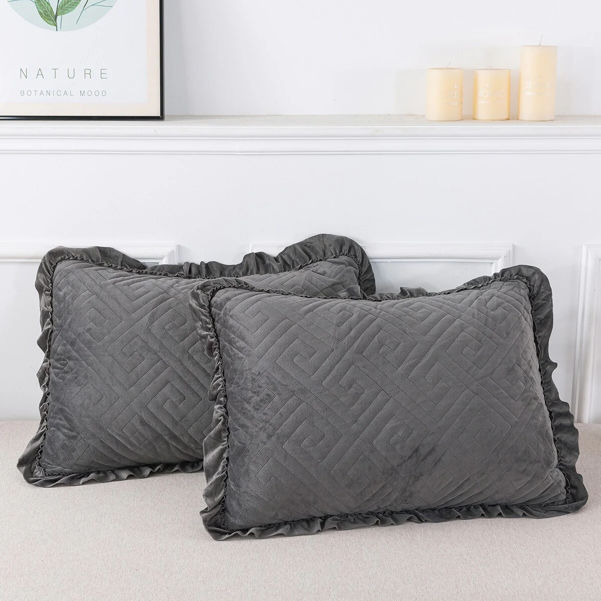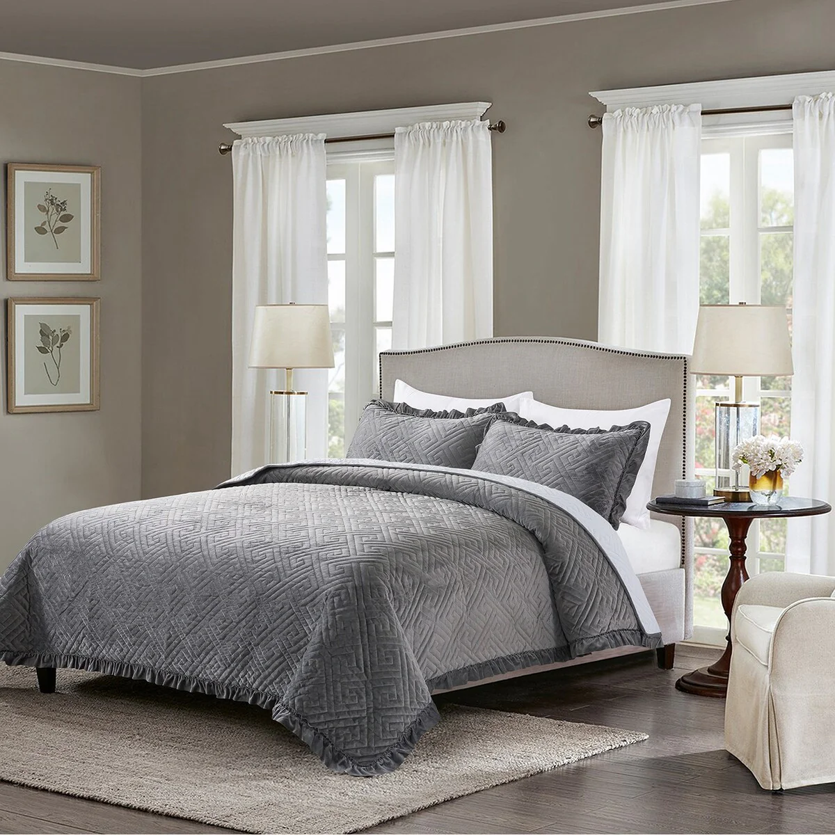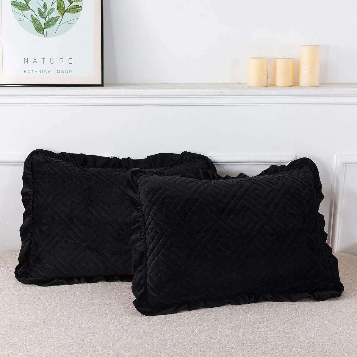 Indulge in the plush comfort of our Lavish Poly Velvet Quilt Set. OEKO-TEX certified and free of harmful substances, this set guarantees quality comfort and wellness. Our high-density quilting technique stitches together three layers of fabric, including a super soft velvet surface and down alternative filling for ultimate relaxation. With its superior moisture absorption capacity and breathability, our quilt set is perfect for year-round use. Choose from King, Queen, or Twin sizes to fit your bedding needs.