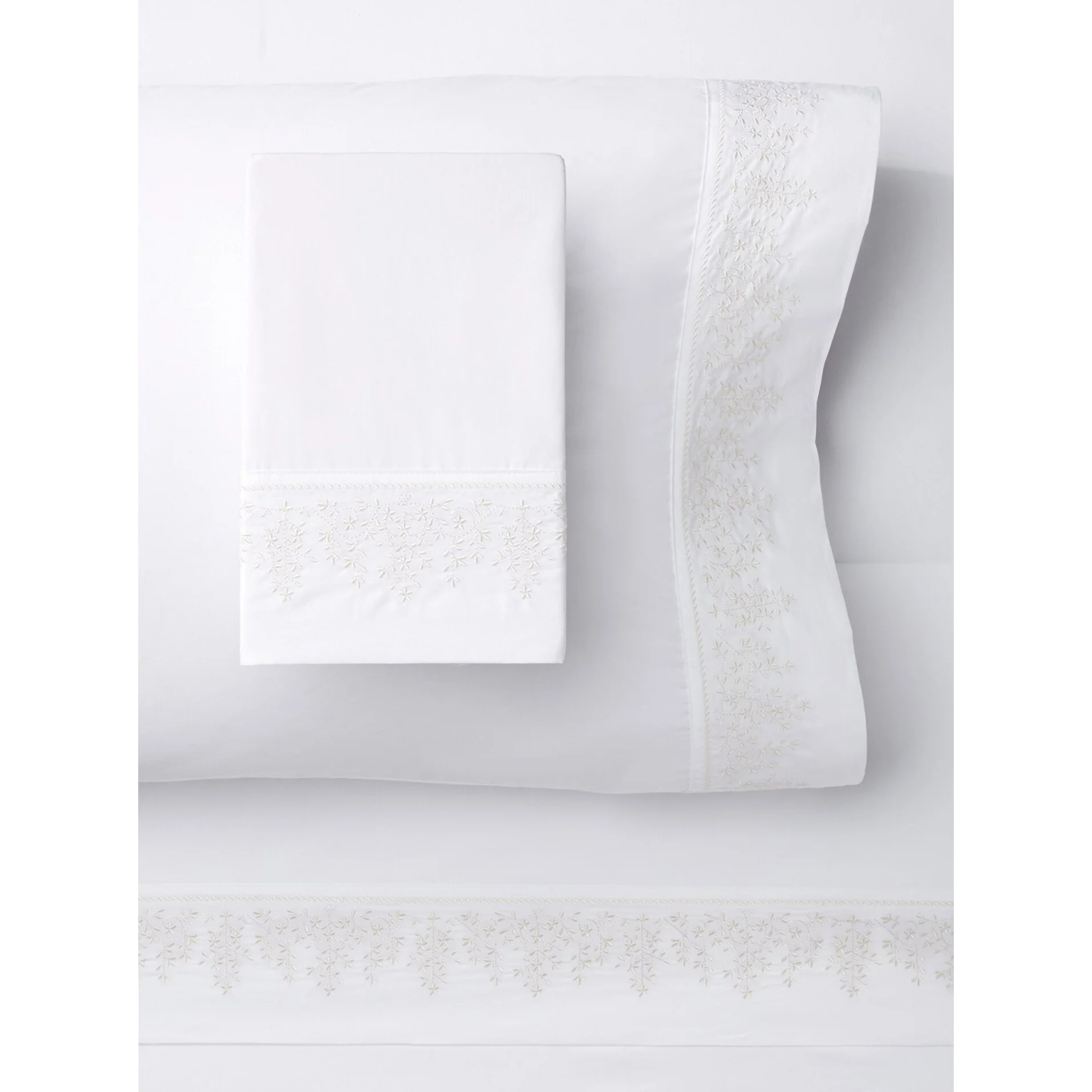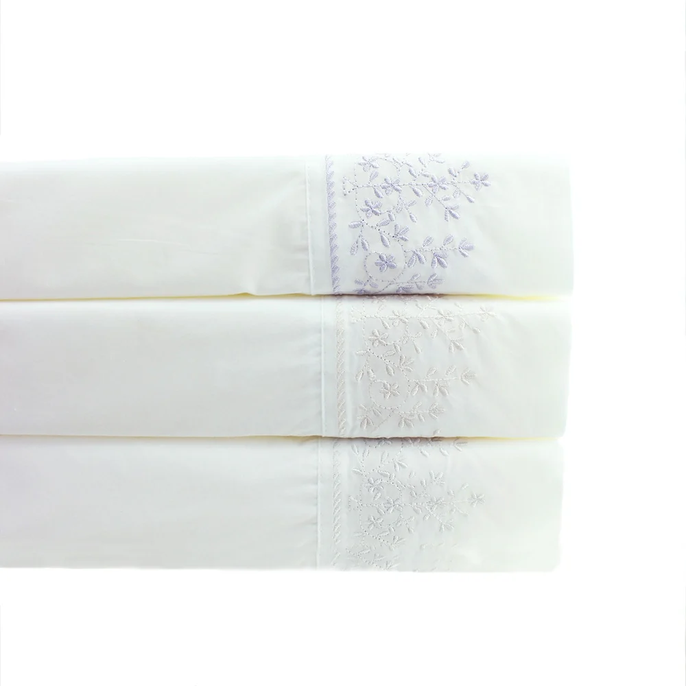 Slumber away in luxurious comfort on this all-natural percale sheet set. Made from 100-percent percale cotton, this set keeps you cozy while allowing your skin to breathe for a sweat-free sleep. Featuring embroidered baby’s breath along the upper edges, this sheet set gives your bedroom a touch of understated sophistication while blending in with your decor.