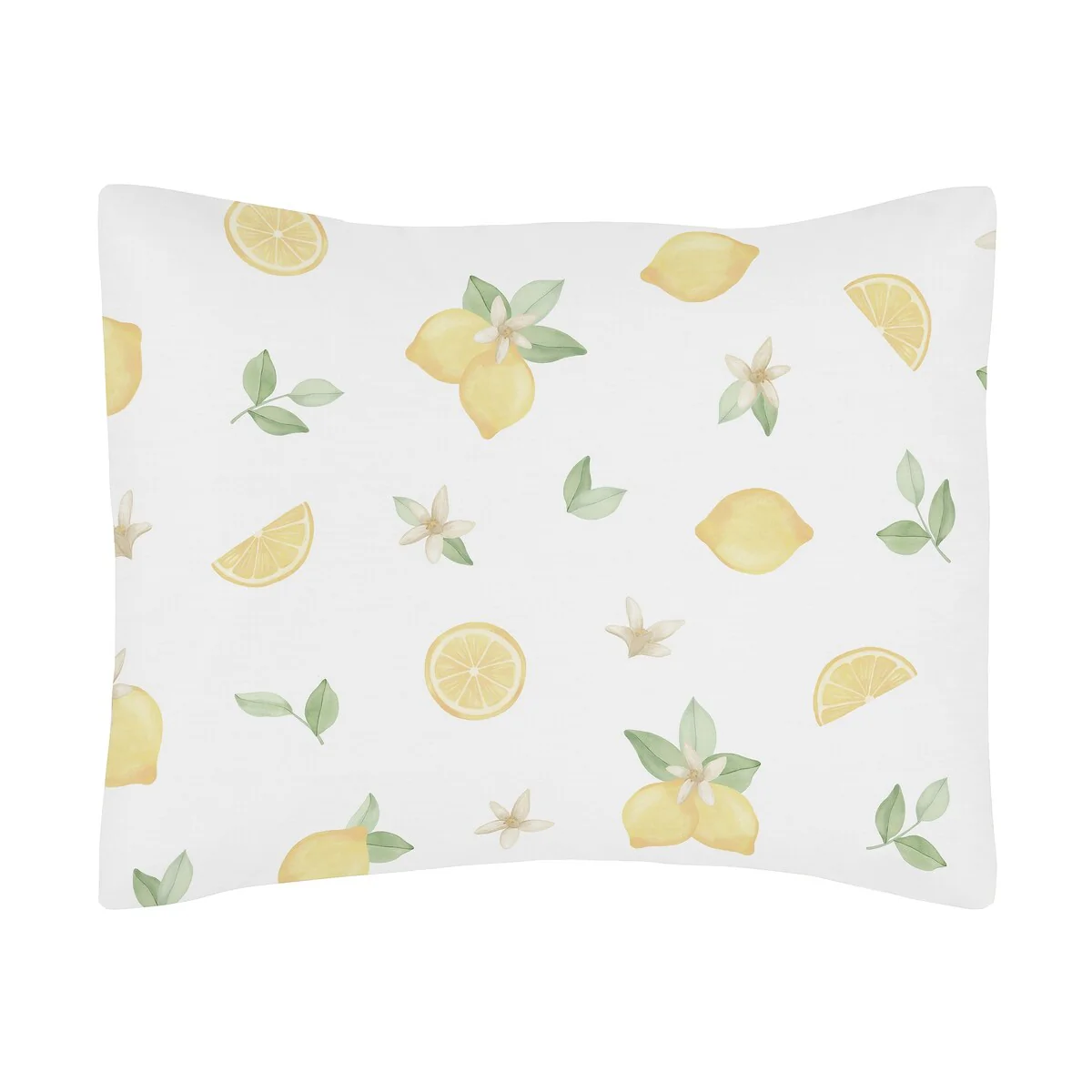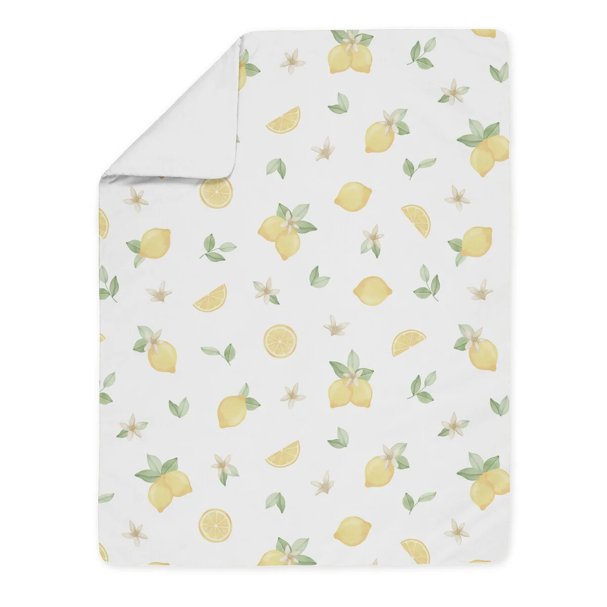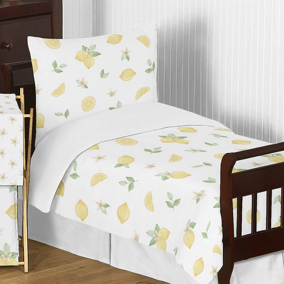 Lemon Floral Girl 5-piece Toddler Comforter Set – Yellow Green White Watercolor Boho Bohemian Farmhouse Fruit Flower Blossom