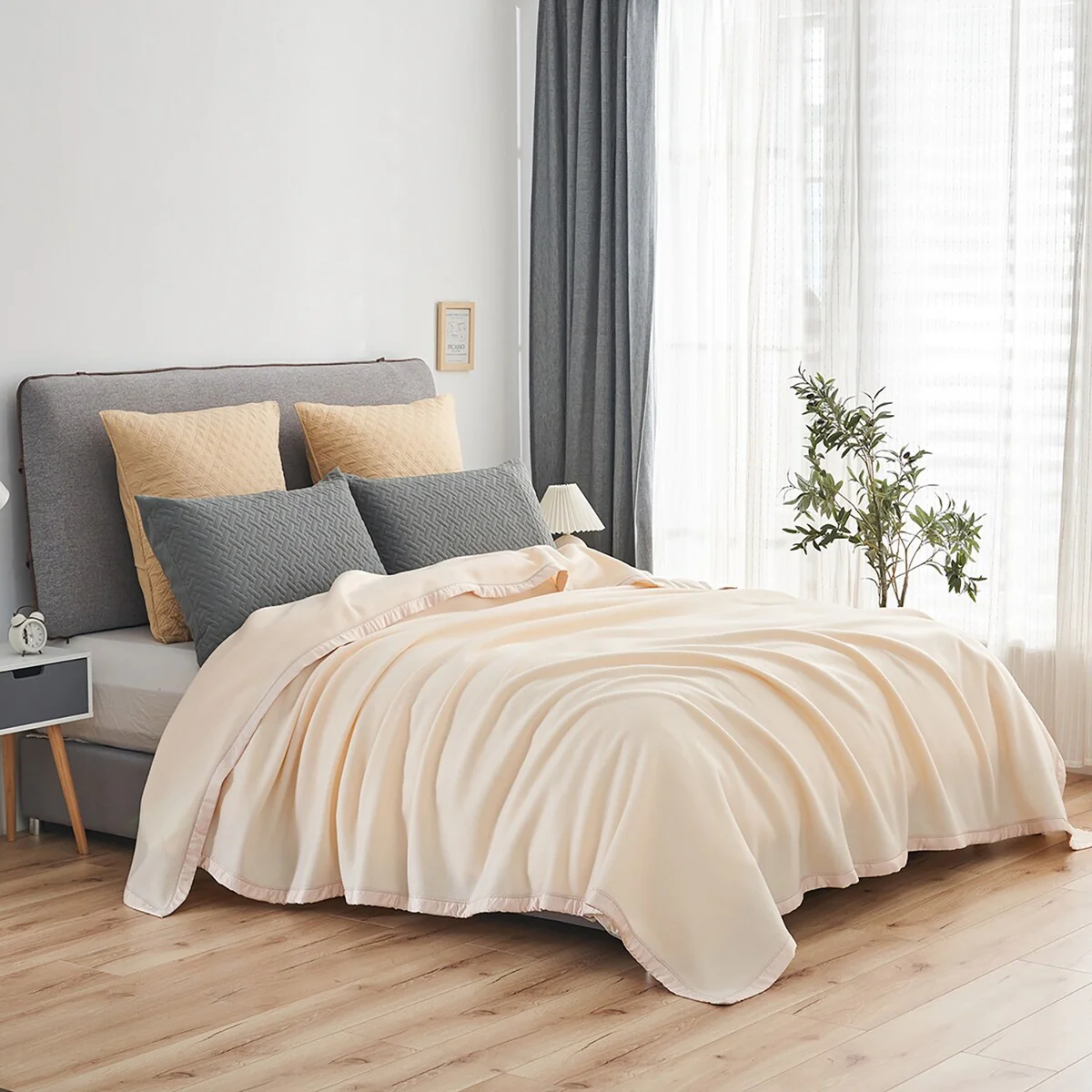 Stay cozy year-round with our Lightweight Blanket with Satin Trim. Made of 100% polyester, our blanket features luxurious satin binding edges that add an extra touch of comfort and style. Choose from a variety of colors including Dark Grey, Robin Egg Blue, Wood Rose, Pale Khaki, Burgundy, Cream, Black, and Dark Blue, and pick your perfect size from Throw, Twin, Queen or King. Our blanket is perfect for travel or camping as it folds down to a small size. This favorite blanket is machine washable gentle/tumble dry low and is sure to be a hit in any room of your home.
