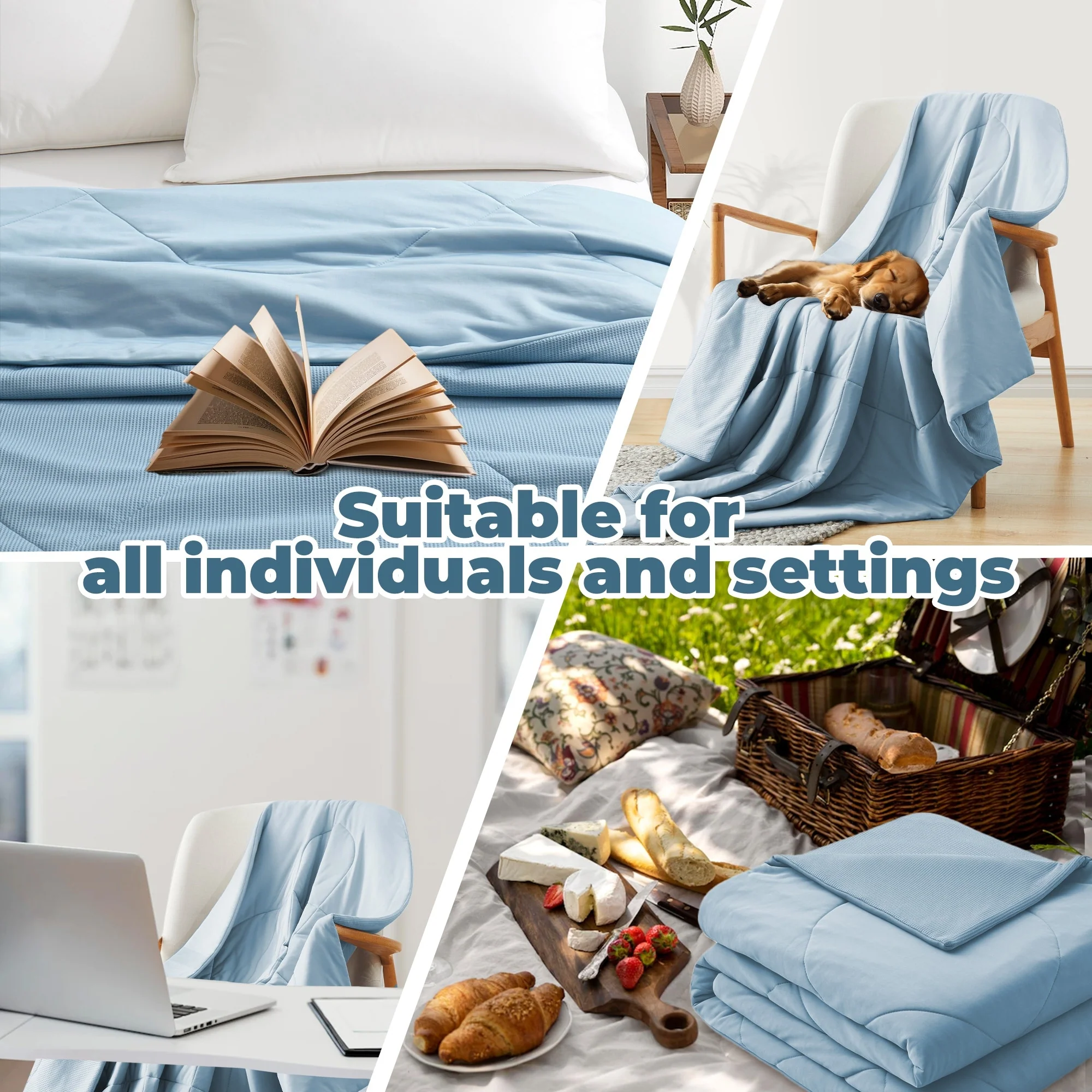 - Dual-Side Reversible Design: Featuring two sides, one side features stylish waffle design and the other featuring silky fabric, this blanket is perfect for any season, keeping you comfortable all year round with moisture absorption and quick-drying wickingt
