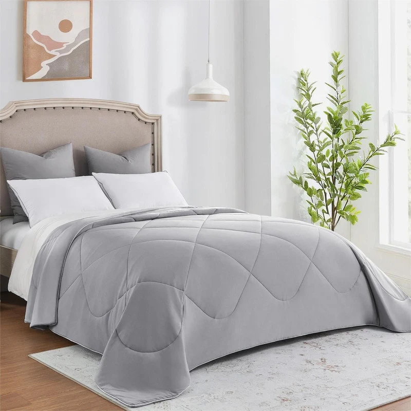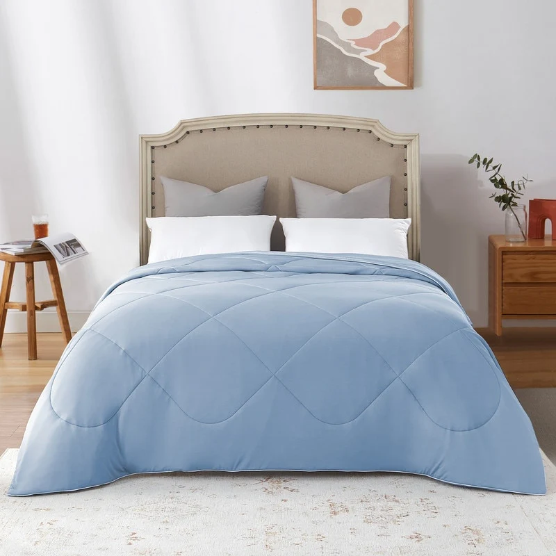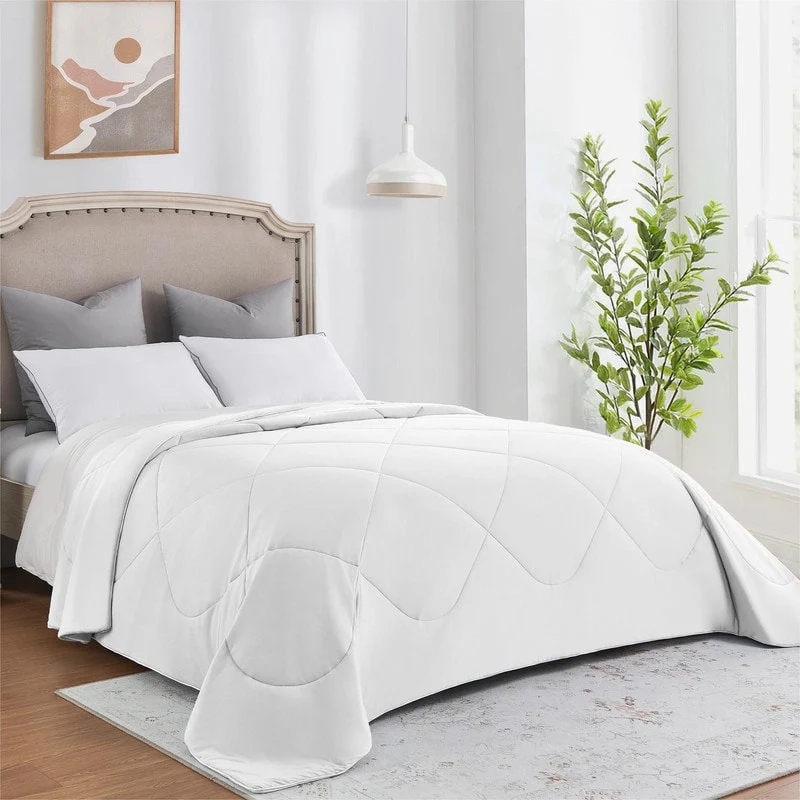- [Super Soft & Skin-friendly] Lightweight summer  Q-Max 0.39 blankets fill with 100% poly, allowing you to enjoy a super-fluffy feeling while sleeping. The soft lightweight comforter will soothe and calm you on hot nights and accompany you to fall asleep soundly and comfortably.