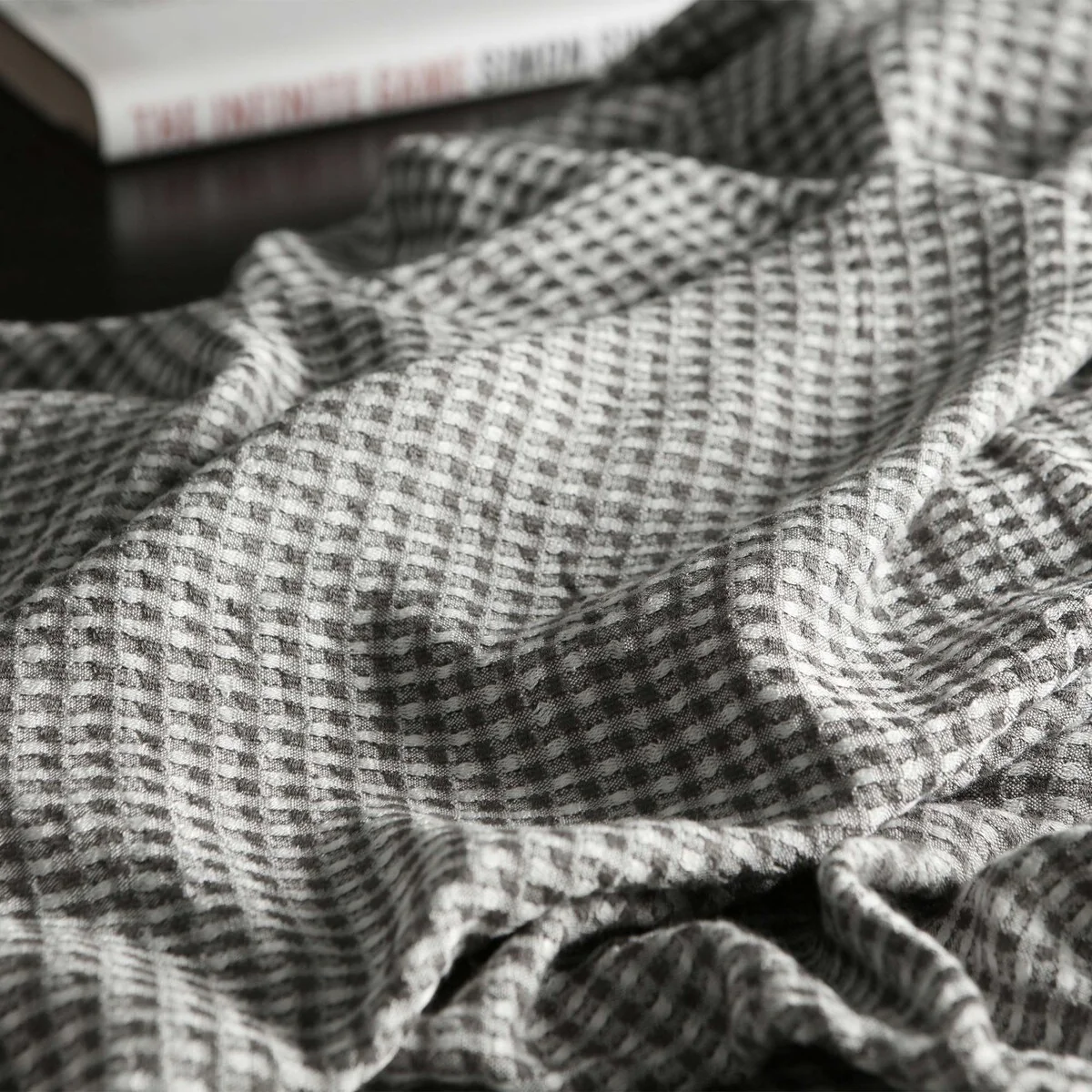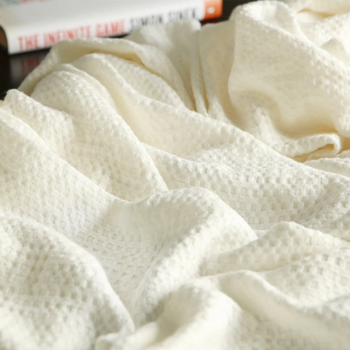 Our versatile waffle weave knit throw blanket is a must-have for every season, perfect for spring, summer, fall and winter. It offers softness, breathability, moisture absorption, and just the right amount of warmth. Whether you’re lounging on the sofa or bed, its milk-like softness and cloud-like comfort will melt away the day’s fatigue. Use it as a bedspread, layering piece, or take it outdoors for picnics and travel. Easy to care for with machine washability, it maintains its quality wash after wash, no shrinking, fading, or unravelling. Embrace comfort effortlessly with our waffle weave knit throw blanket, your essential companion for relaxation and adventure alike.