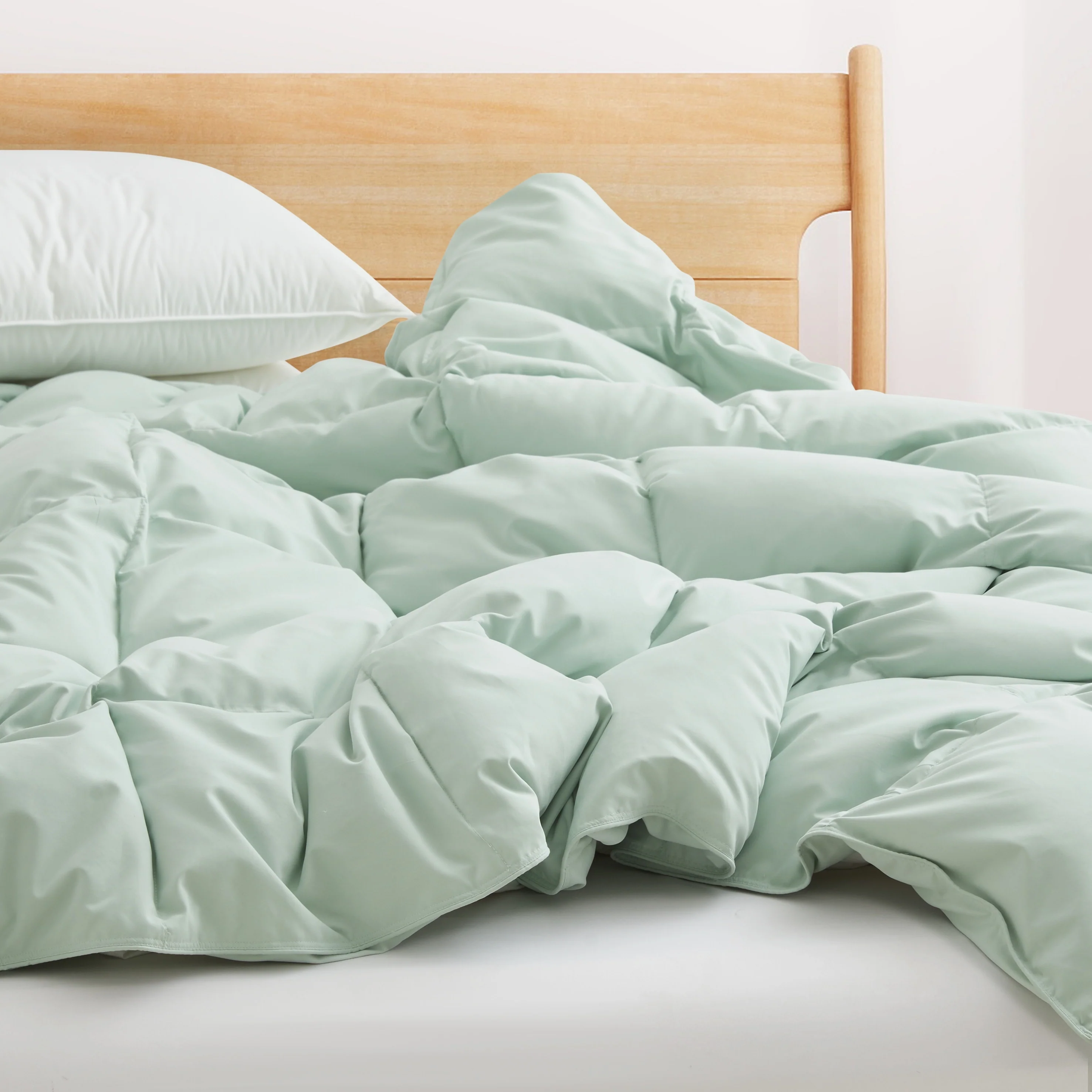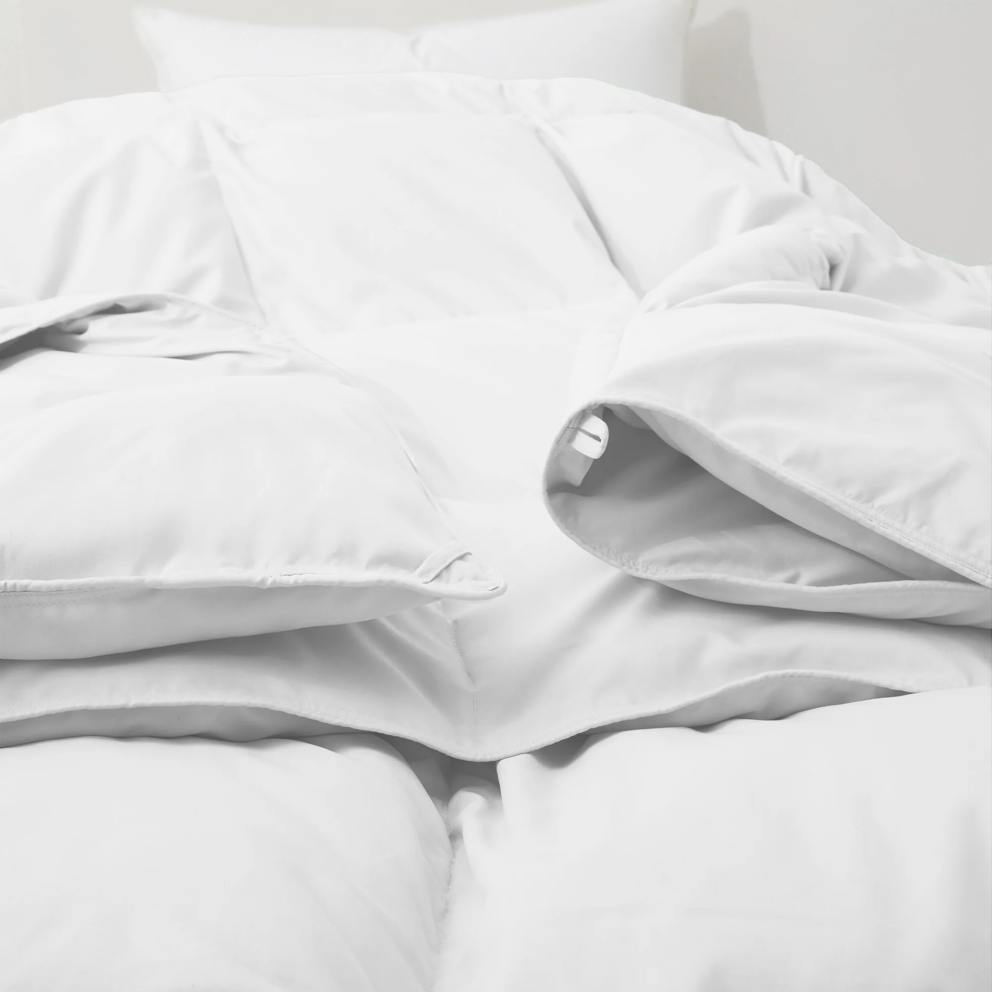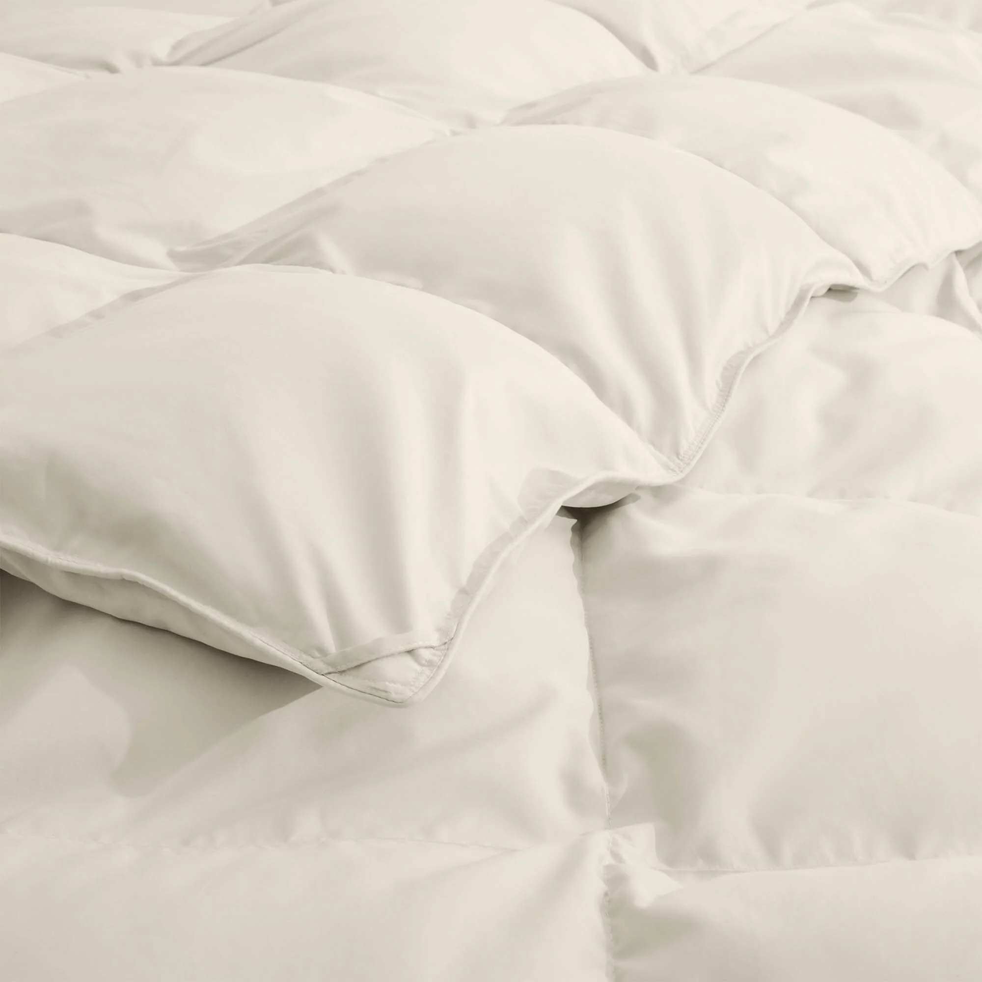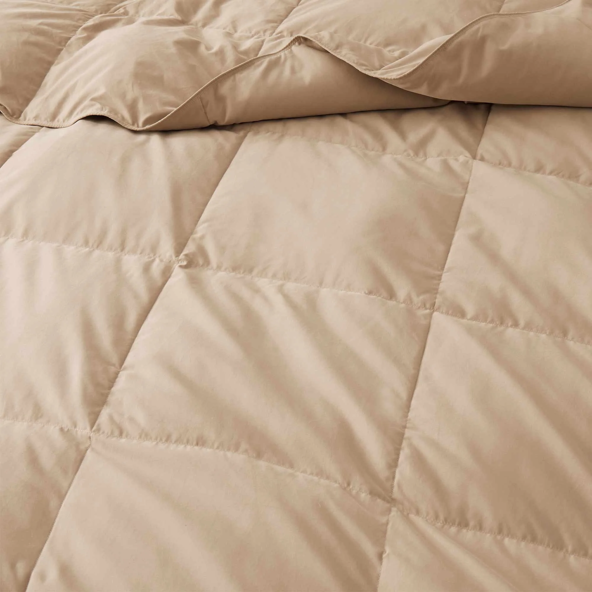 This luxurious Lightweight down fiber comforter is the perfect choice for those seeking a truly indulgent bedding experience. Crafted with premium goose feather fiber and down fill, it guarantees superior quality. The soft cover of the comforter provides extra loft and just the right amount of warmth, ideal for year-round use. Its exquisite stitching not only enhances its beauty but also ensures durability, promising years of lasting comfort. Additionally, the comforter is equipped with four corner loops that easily attach to a duvet cover, preventing shifting and keeping your bedding in place all night long. Experience the peaceful sleep you’ve been longing for with this exceptional comforter.Â
