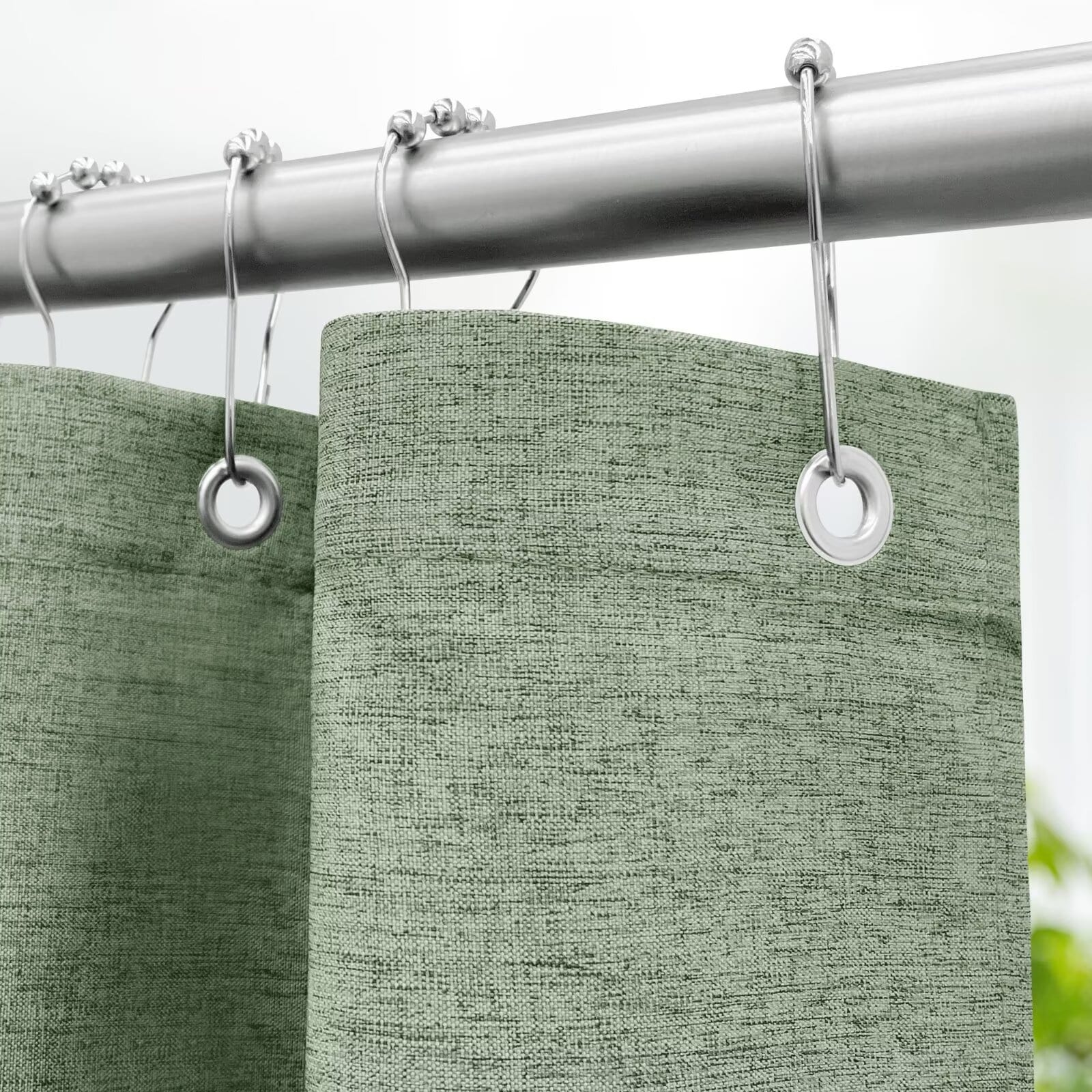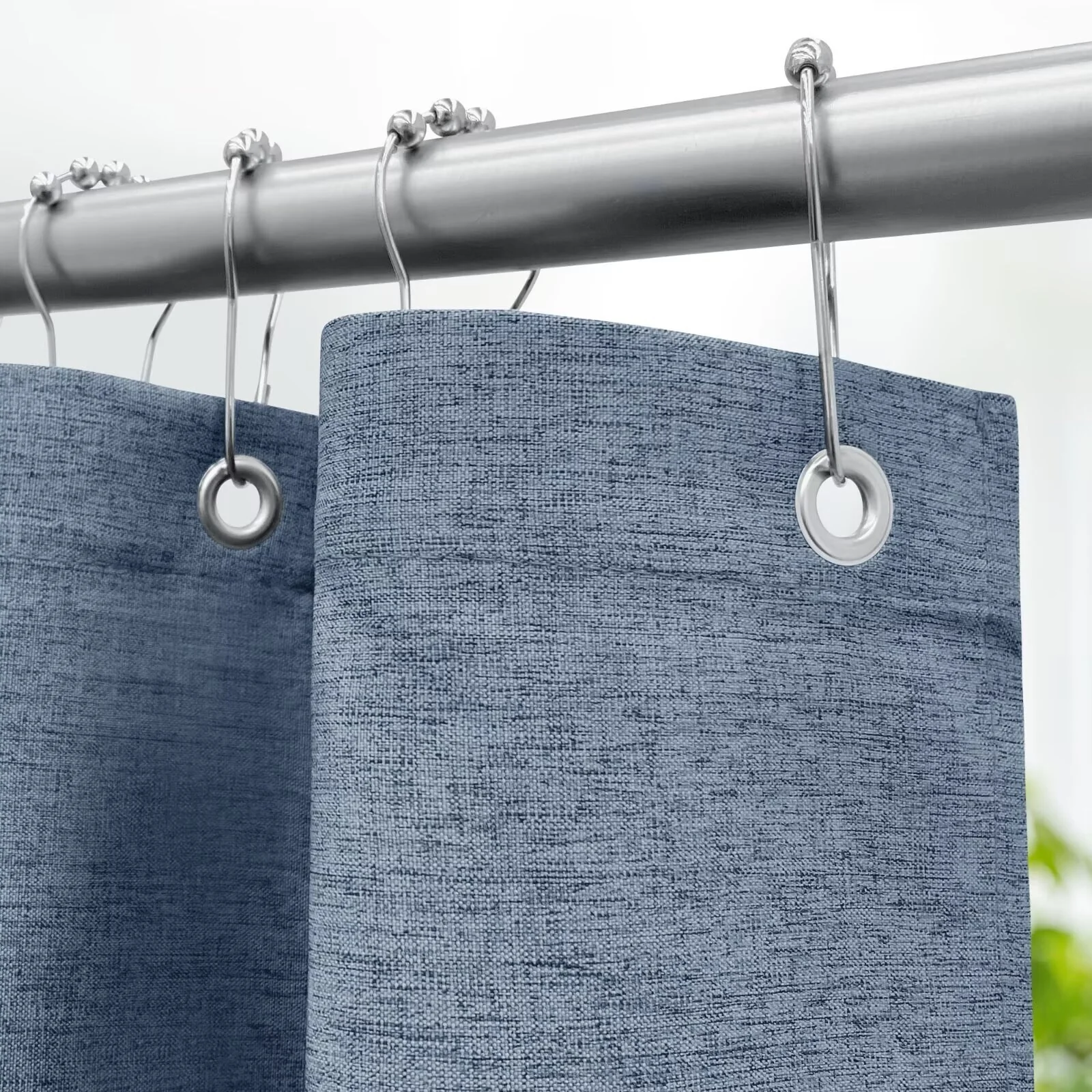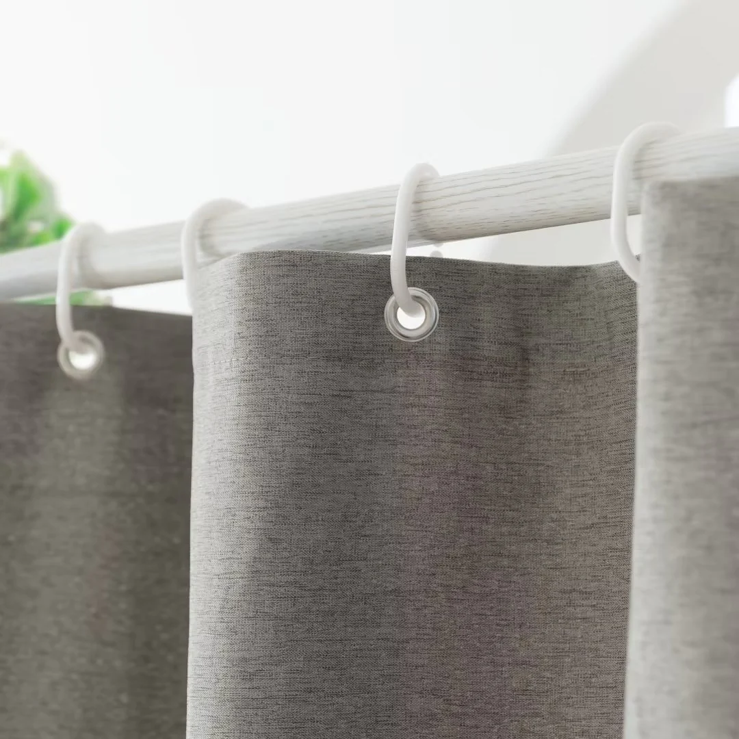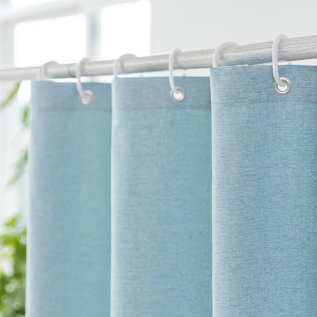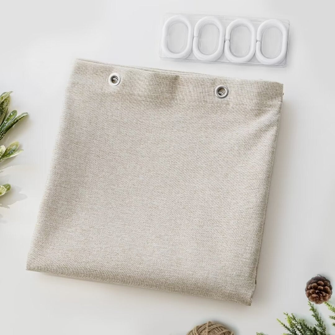 Made of 200GSM heavy duty polyester linen fabric, making this shower curtain very draping and easy to keep in place. The linen texture enriches its appearance, adds elegance and luxury to your bathroom. Modern and simple design is sure to match different bathroom styles. This waterproof fabric shower curtain can well repel the water and promote the formation of water droplets, causing water to roll off the surface quickly. 12 plastic hooks included in the package, making it a complete purchase, help save your time and money. Â