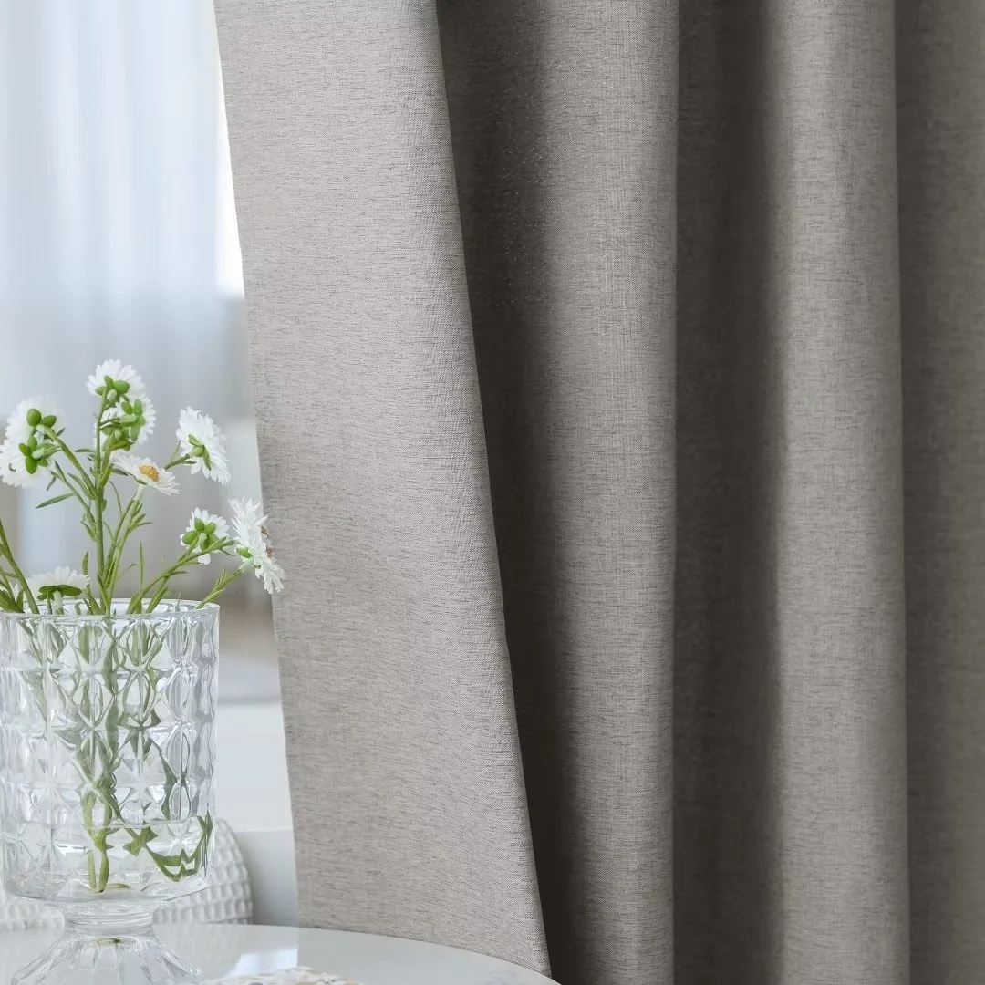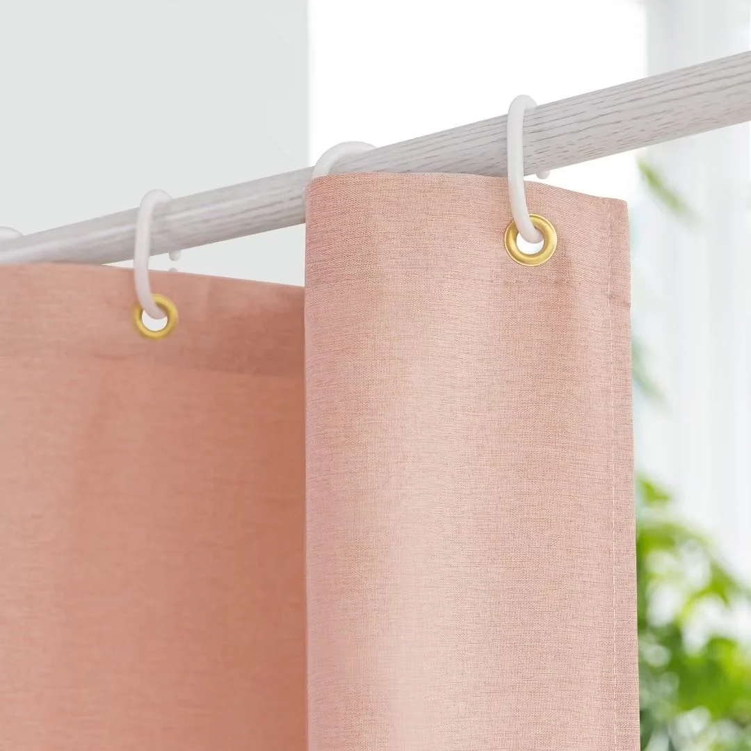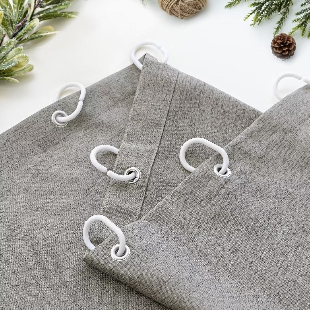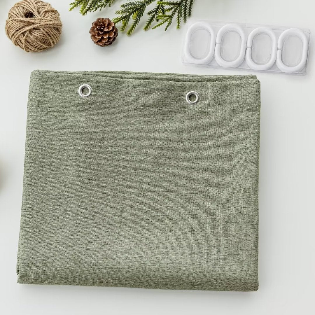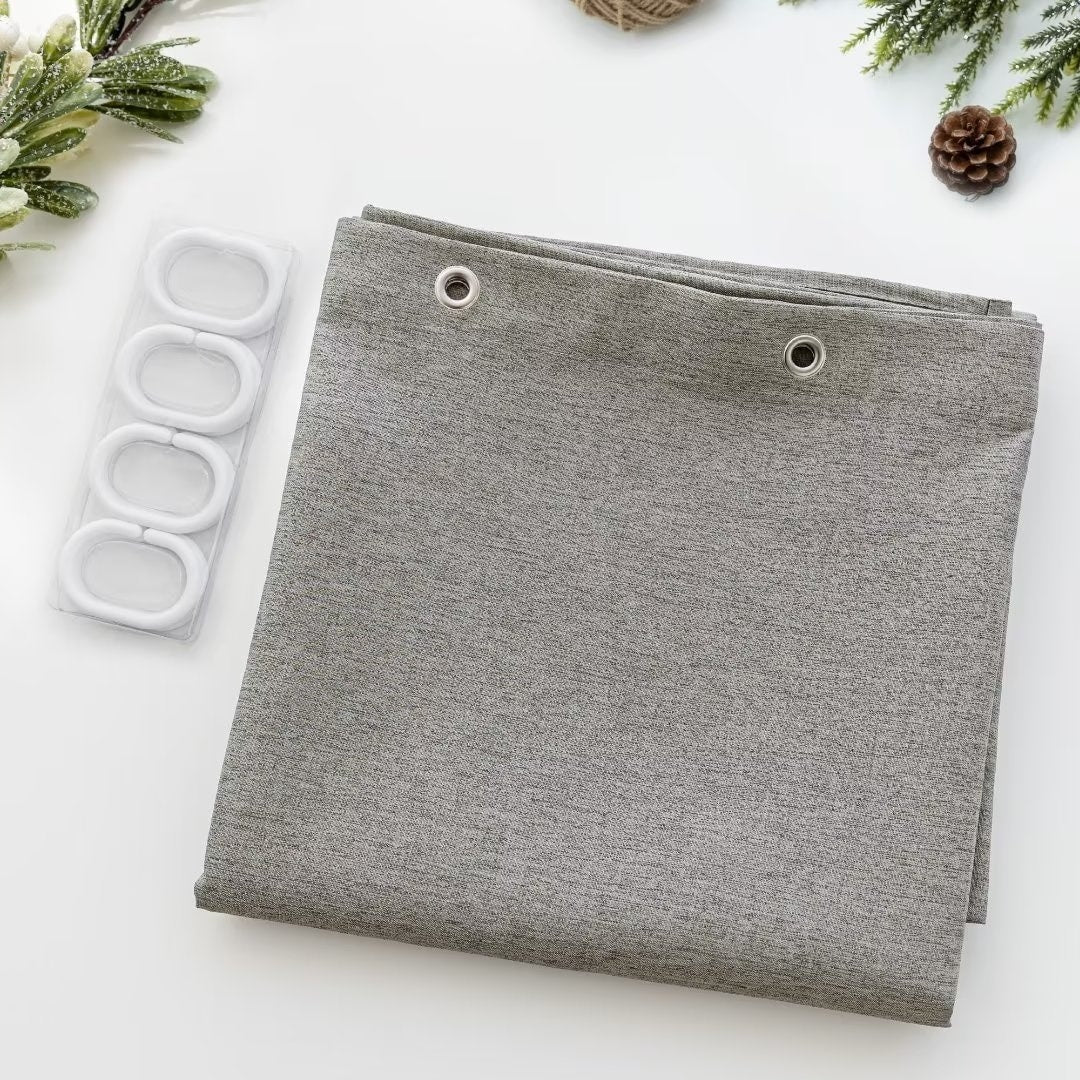 Made of 200GSM heavy duty polyester linen fabric, making this shower curtain very draping and easy to keep in place. The linen texture enriches its appearance, adds elegance and luxury to your bathroom. Modern and simple design is sure to match different bathroom styles. This waterproof fabric shower curtain can well repel the water and promote the formation of water droplets, causing water to roll off the surface quickly. 12 plastic hooks included in the package, making it a complete purchase, help save your time and money. Â