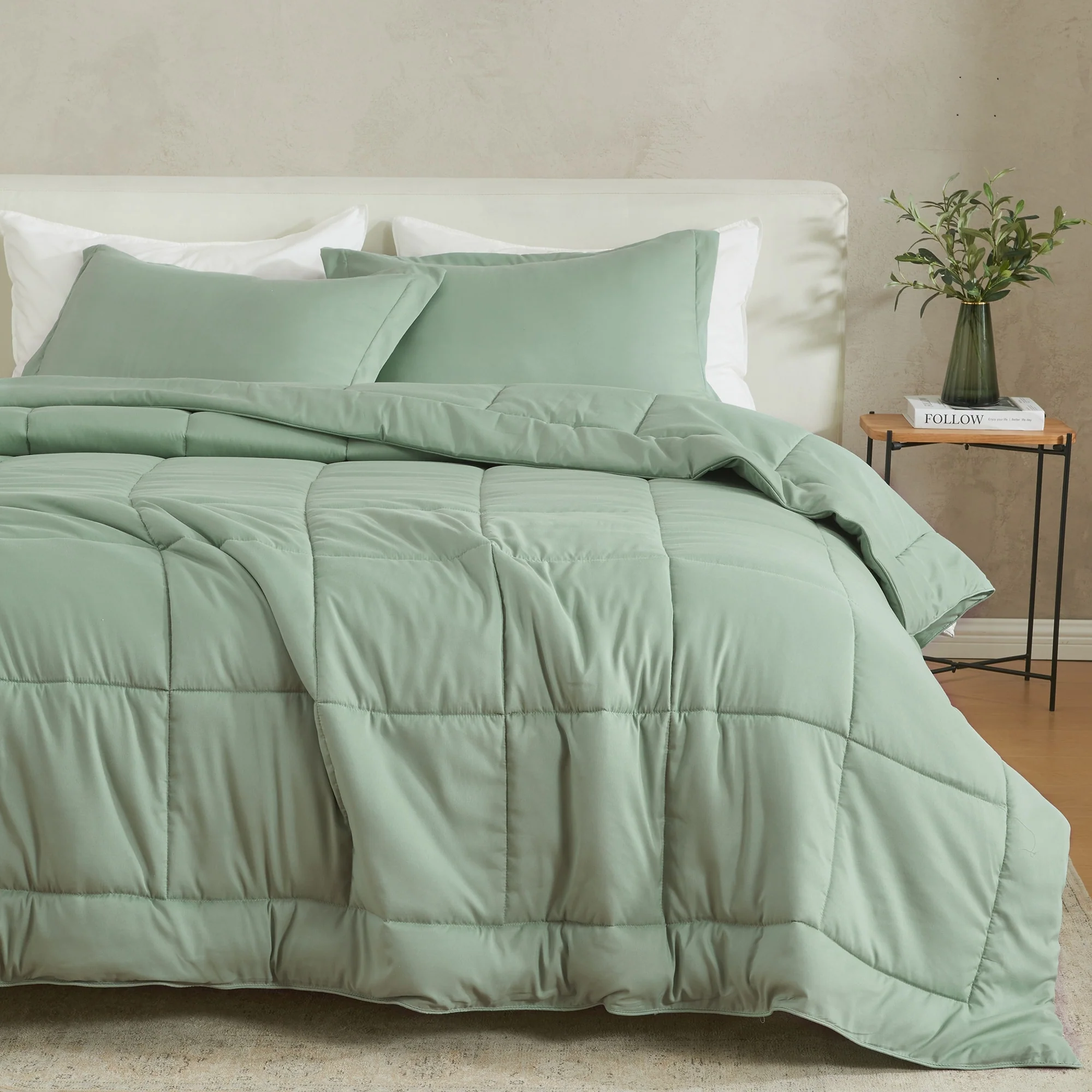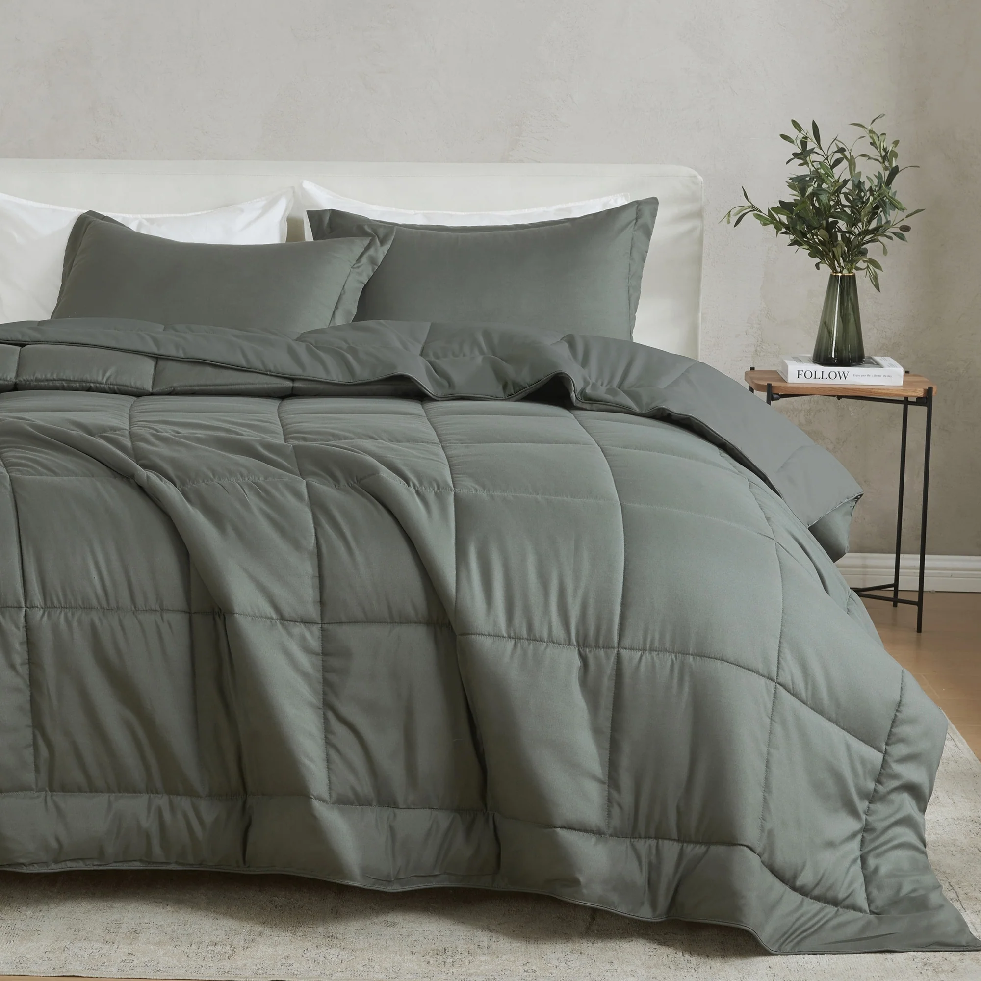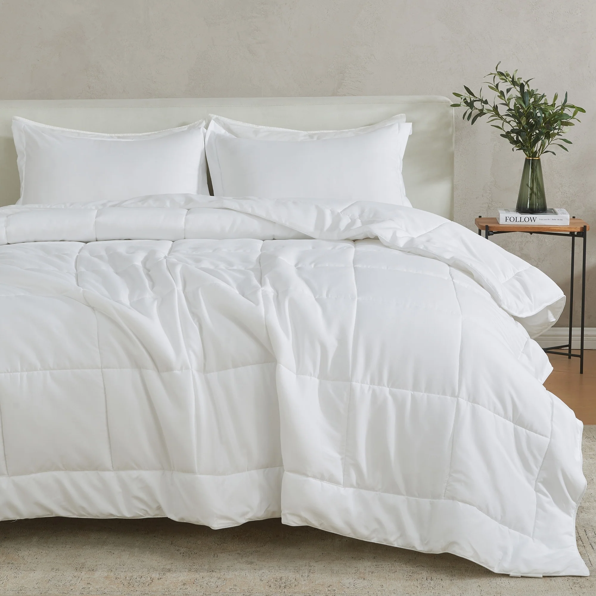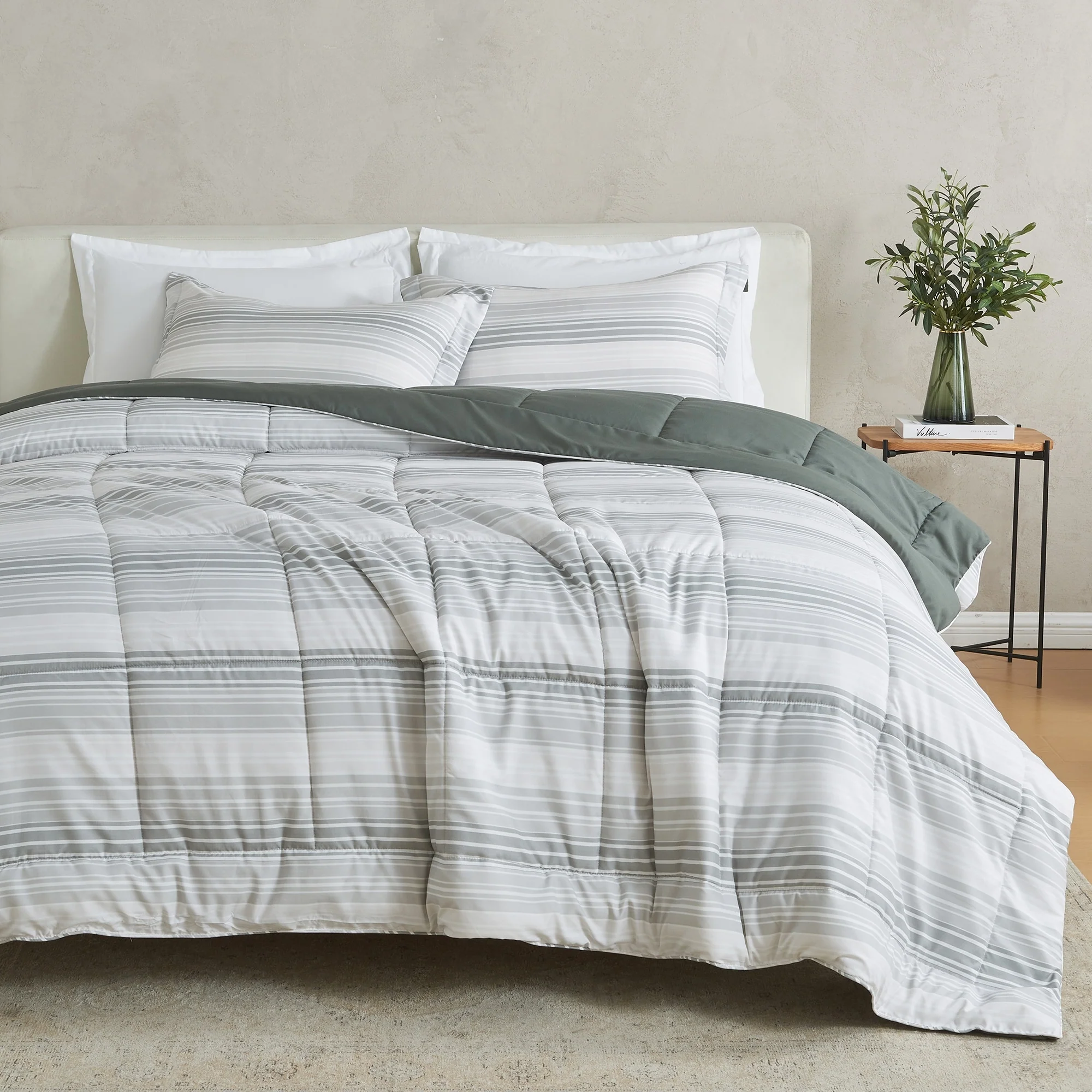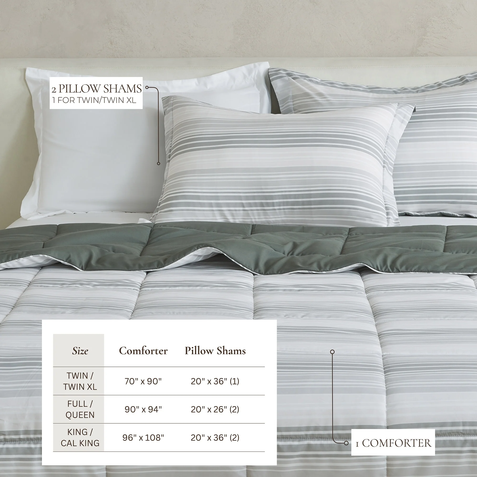 Immerse yourself in a realm of refined style and unparalleled comfort with this exquisite comforter set with shams. This set is crafted to harmonize design, functionality, durability, and comfort, ensuring a serene escape at the end of every day. Crafted from soft, brushed microfiber and durable stitching to keep the lofty down alternative fill in place. Transform your bedroom decor effortlessly with the reversible feature of this stylish comforter; change your bedding to match your evolving taste and reflect your truest style in your bedroom decor.