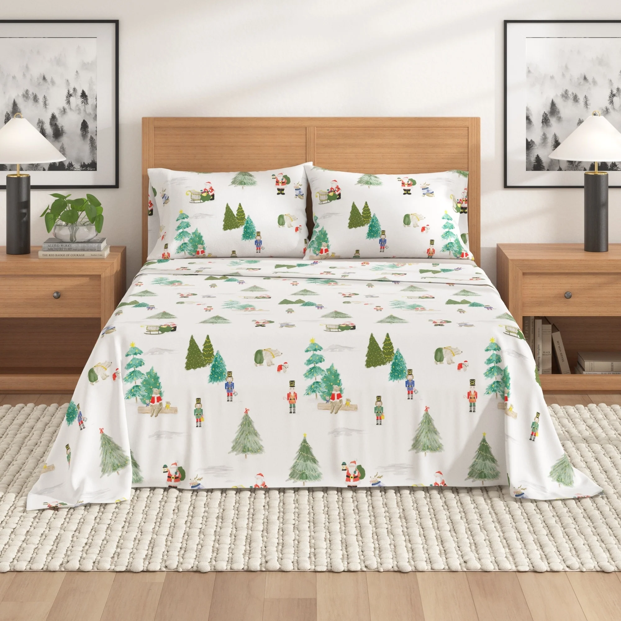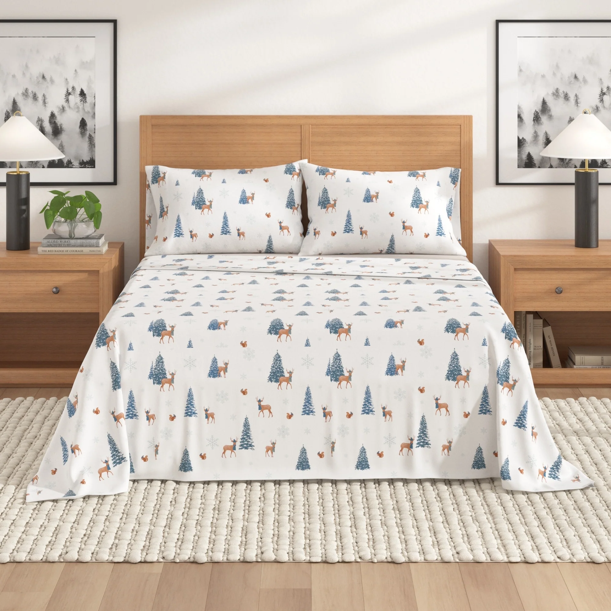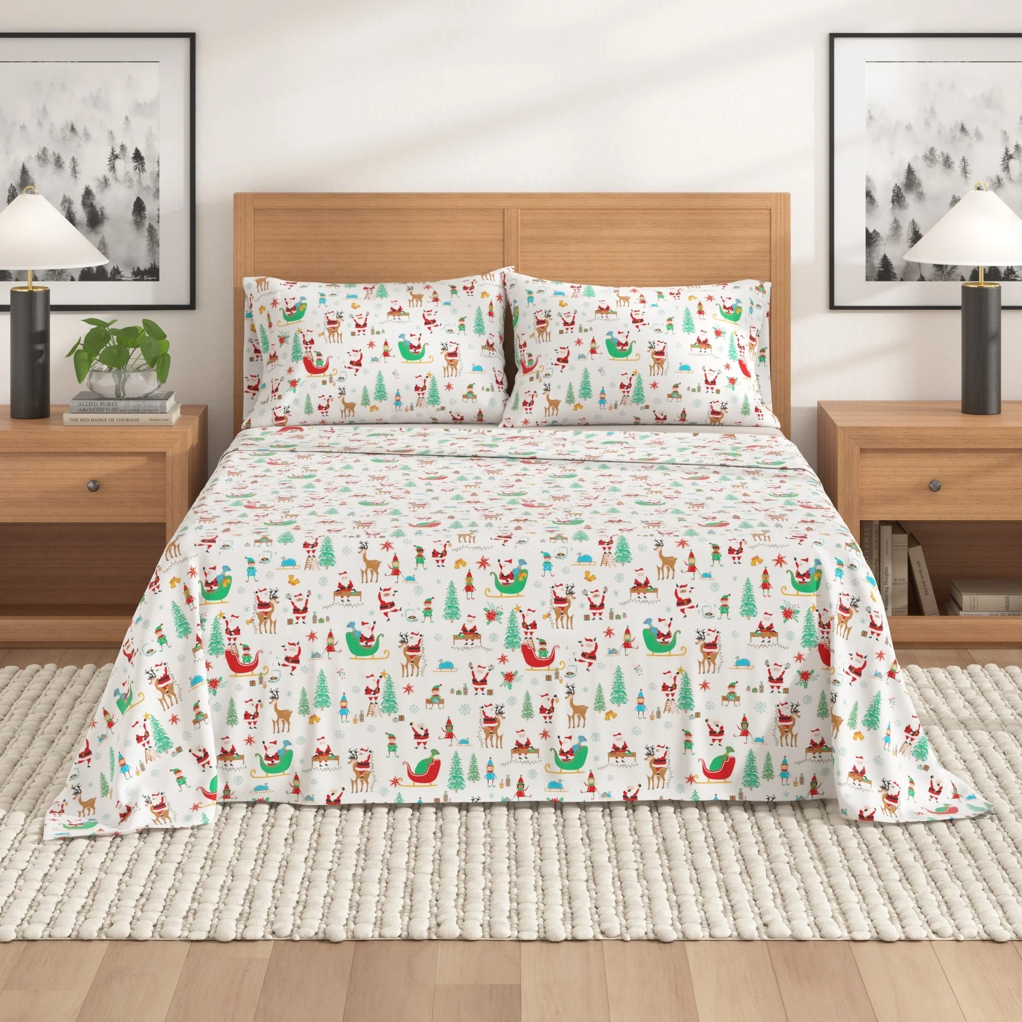 Linery & Co. Christmas Turkish Cotton Double-Brushed Flannel Bed Sheet Set
