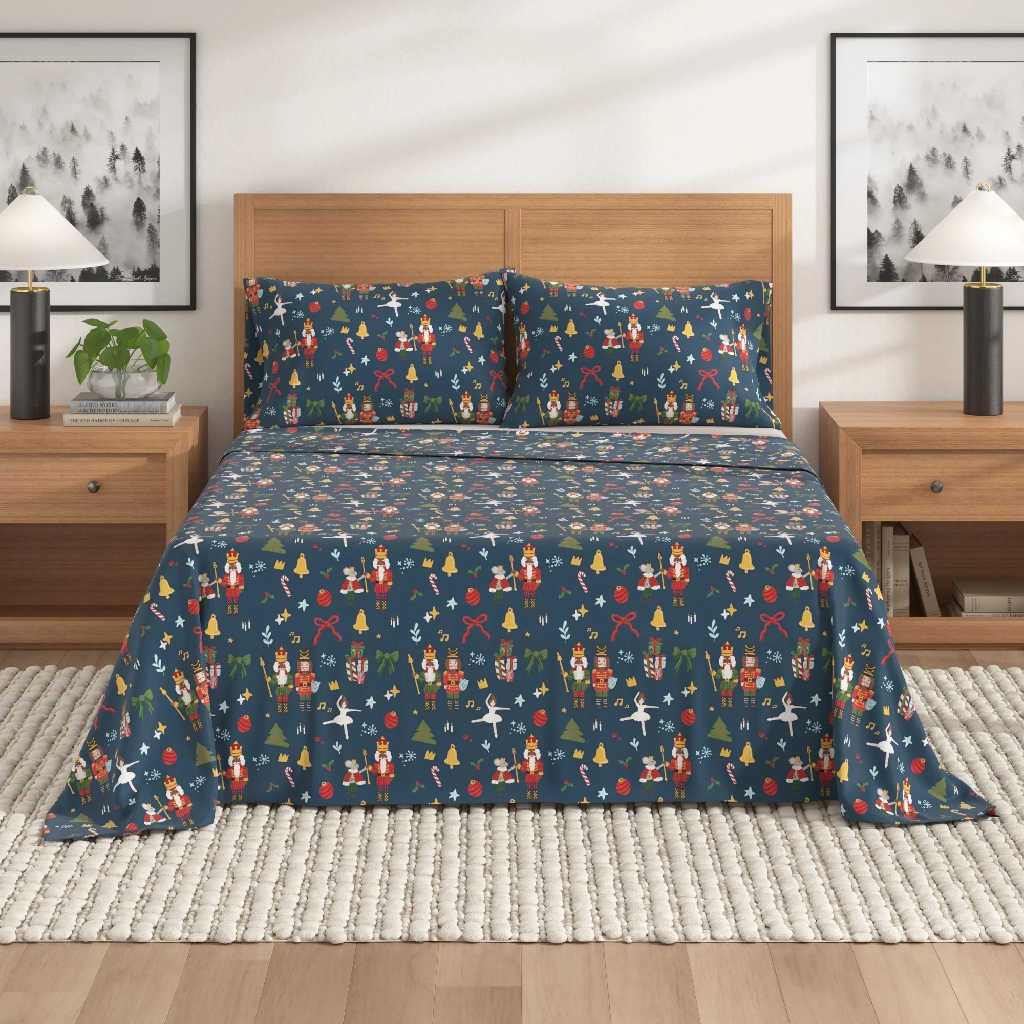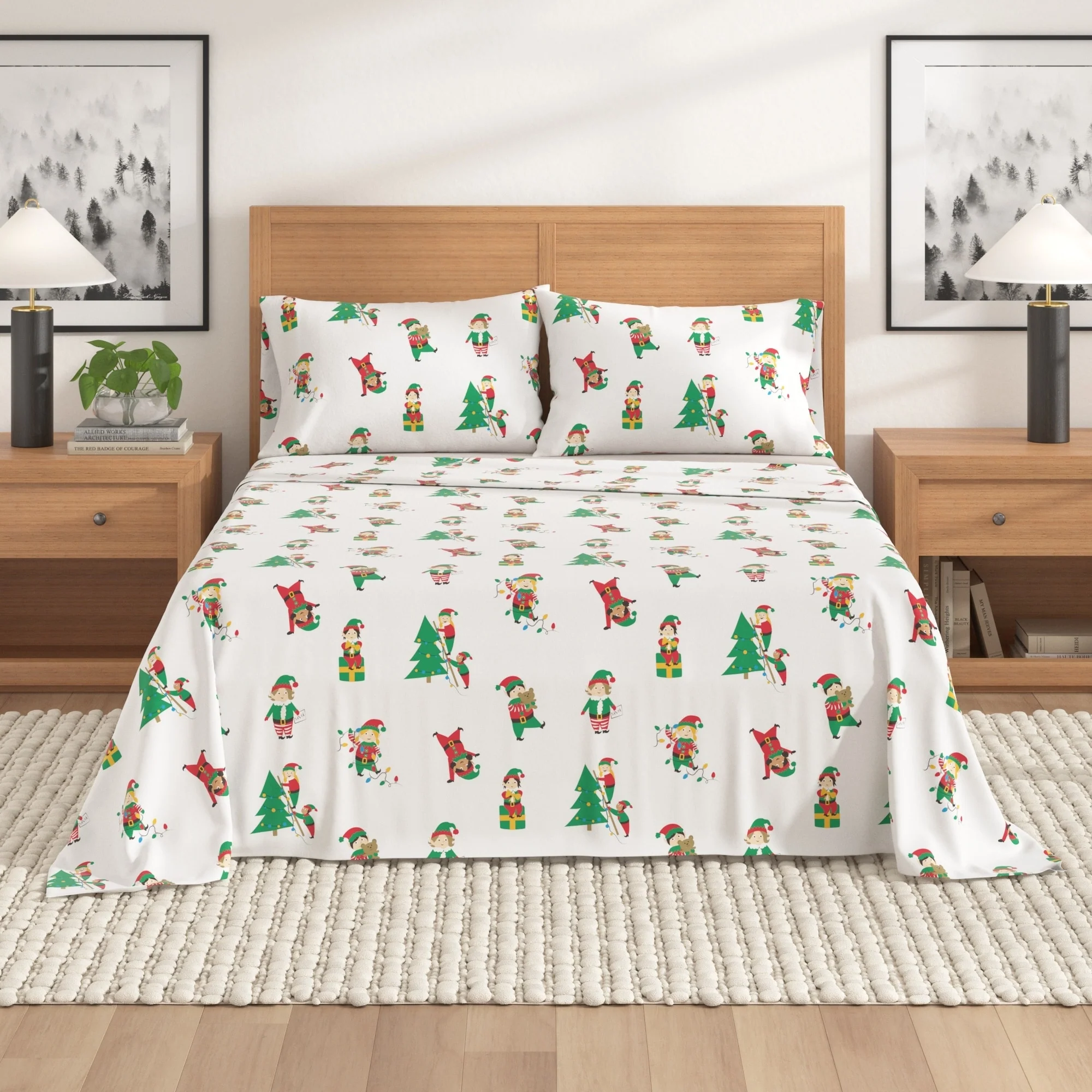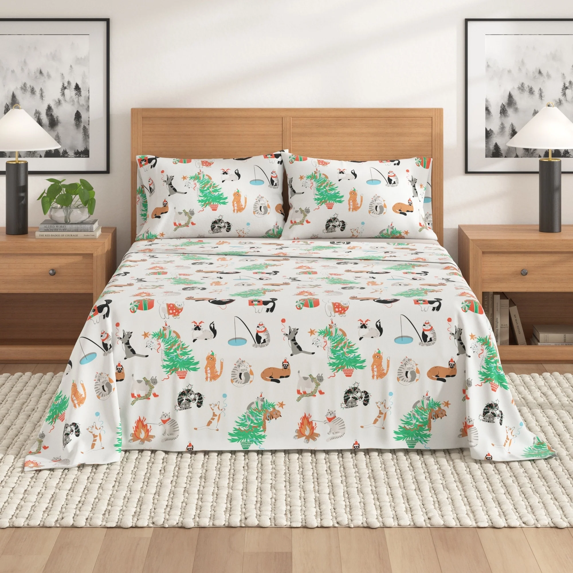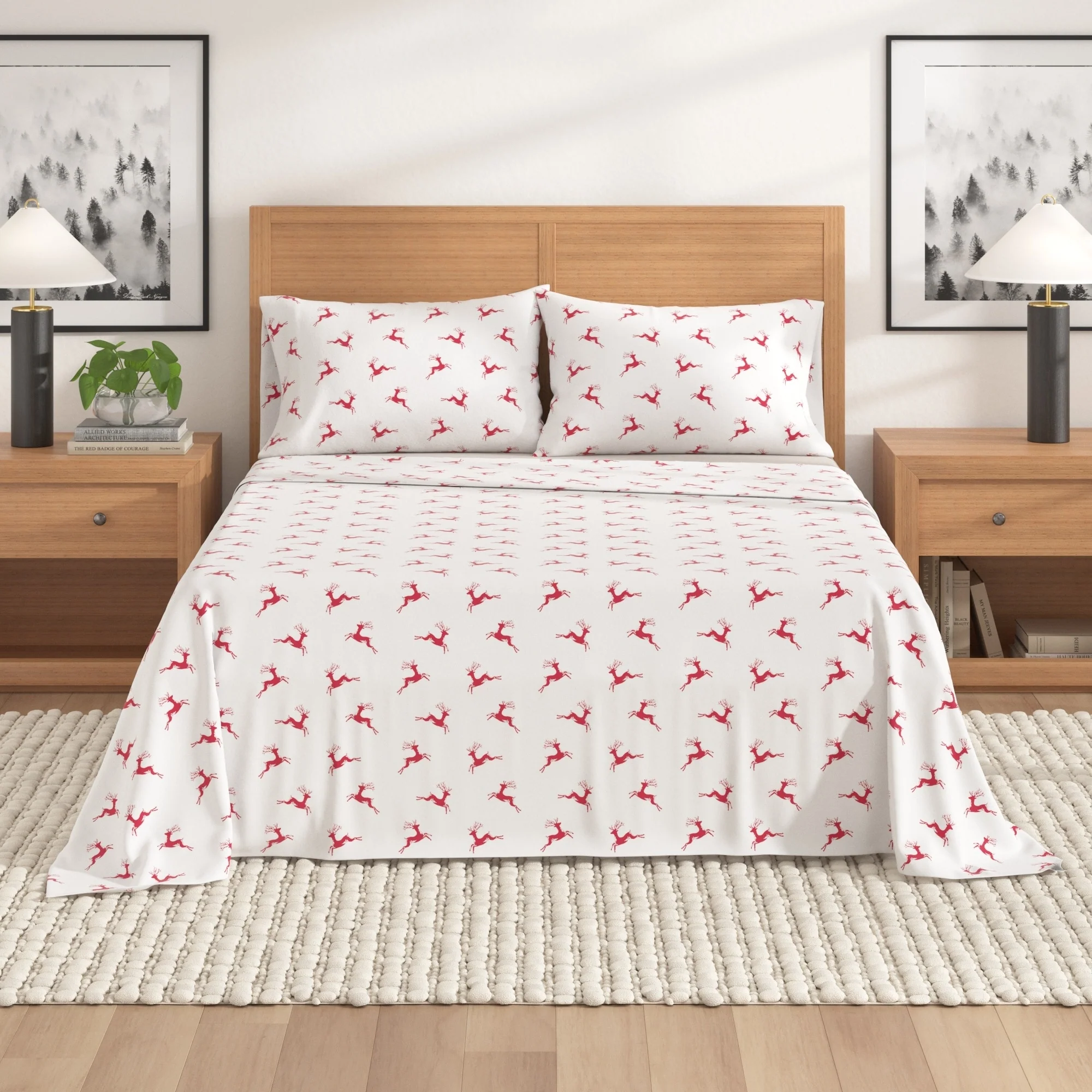 Linery & Co. Christmas Turkish Cotton Double-Brushed Flannel Bed Sheet Set