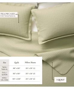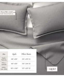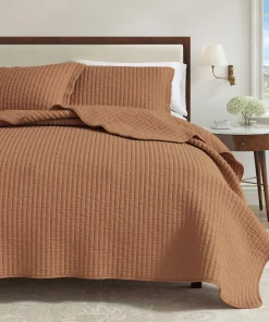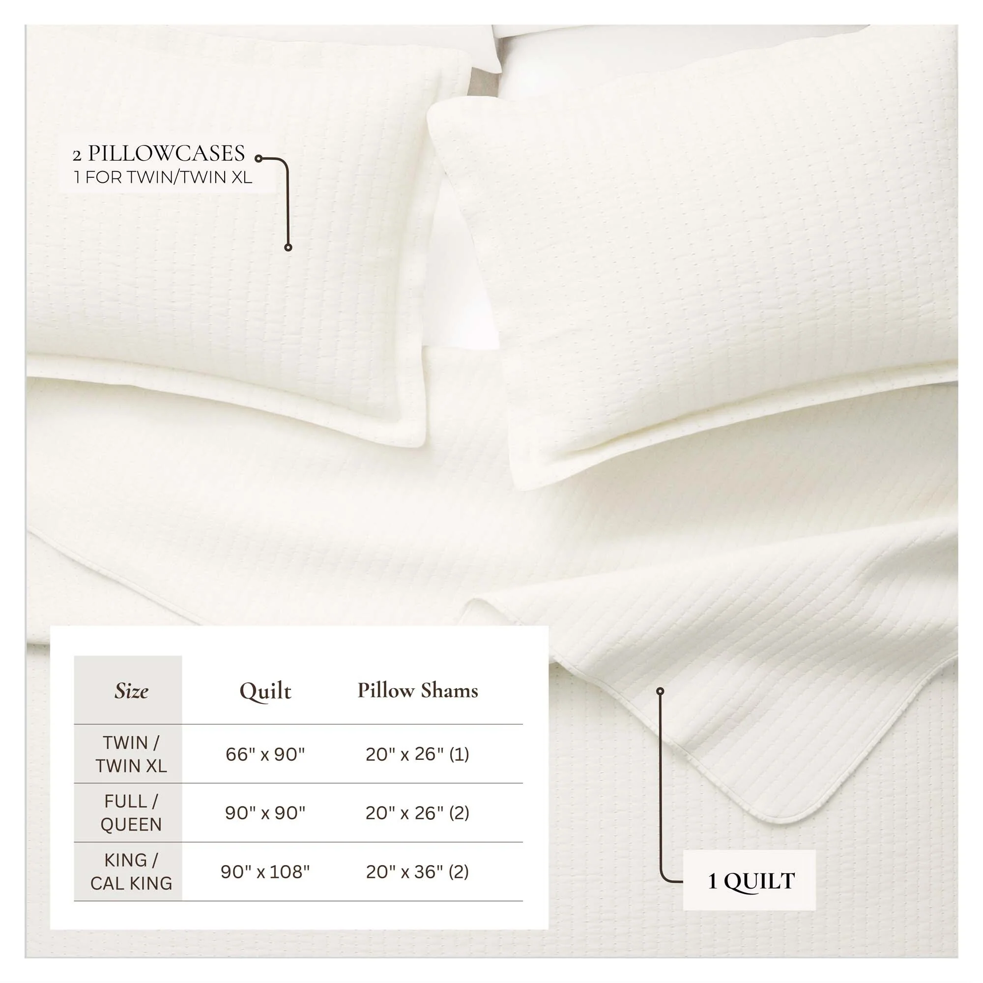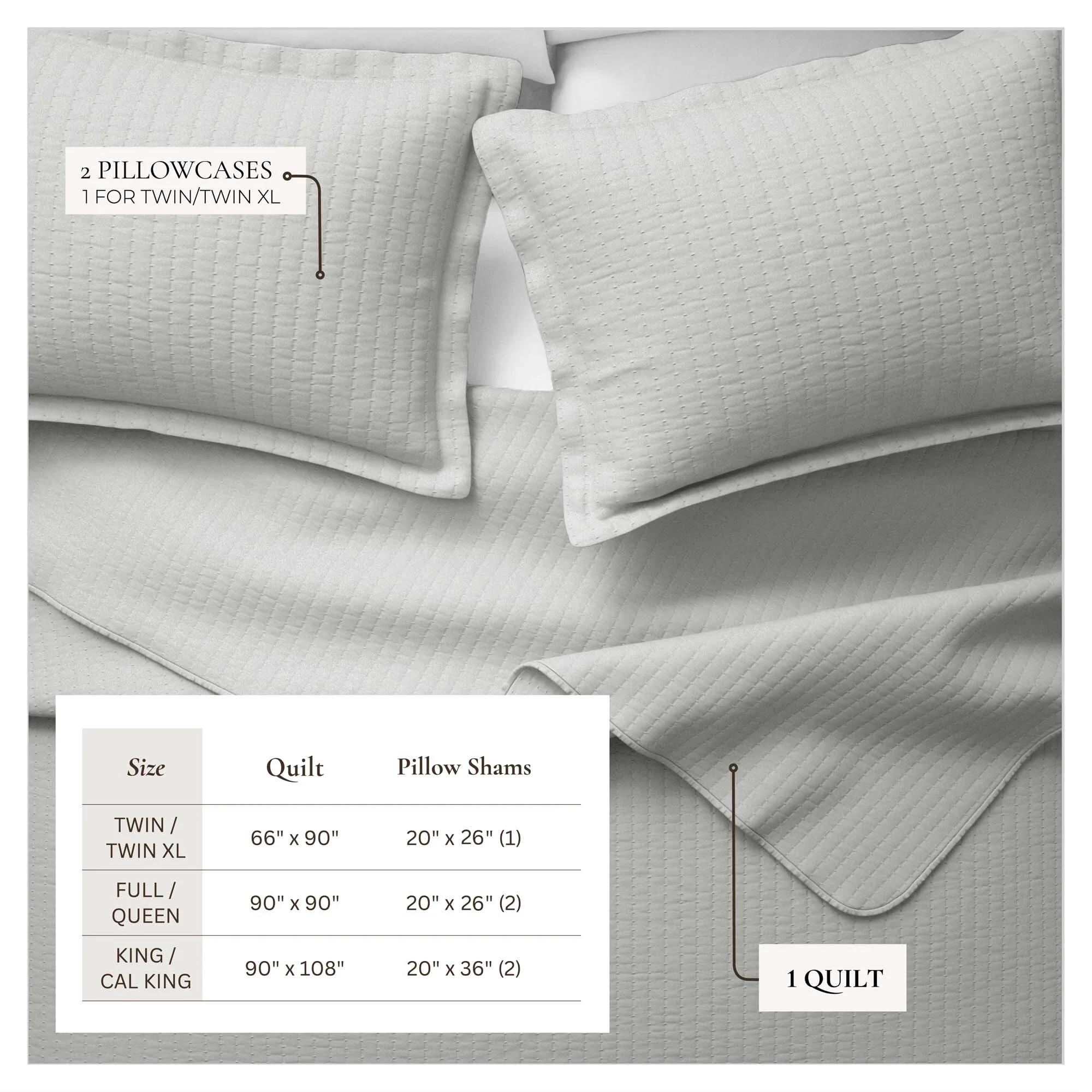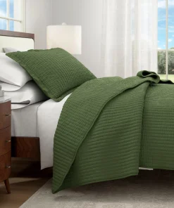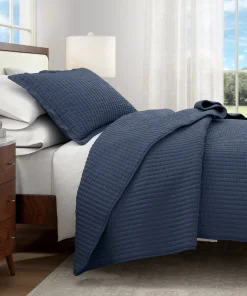 This deliciously soft bedspread will complement your decor with its rich solid color assortment and basket weave stitching. Use it to create a charming bed styling or your ideal lived-in look. This set is quite versatile in style. The lightweight warmth of this quilt is ideal for a year-round slumber every season. Add this quilt to your bed for an effortless cozy bedroom look.