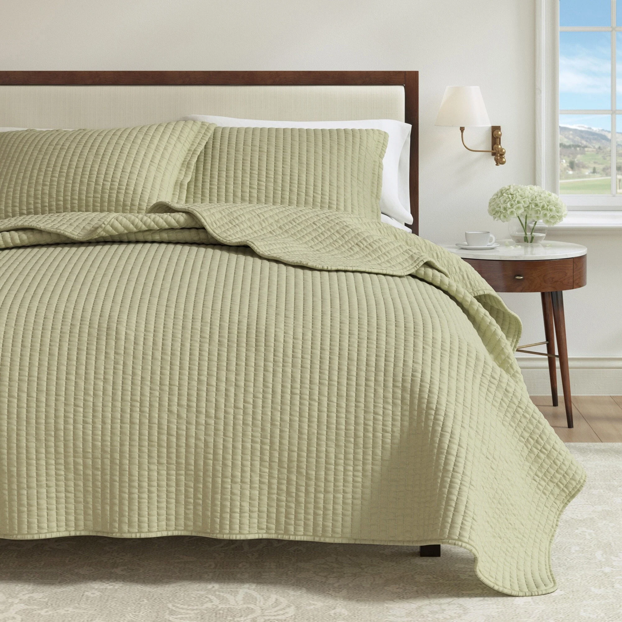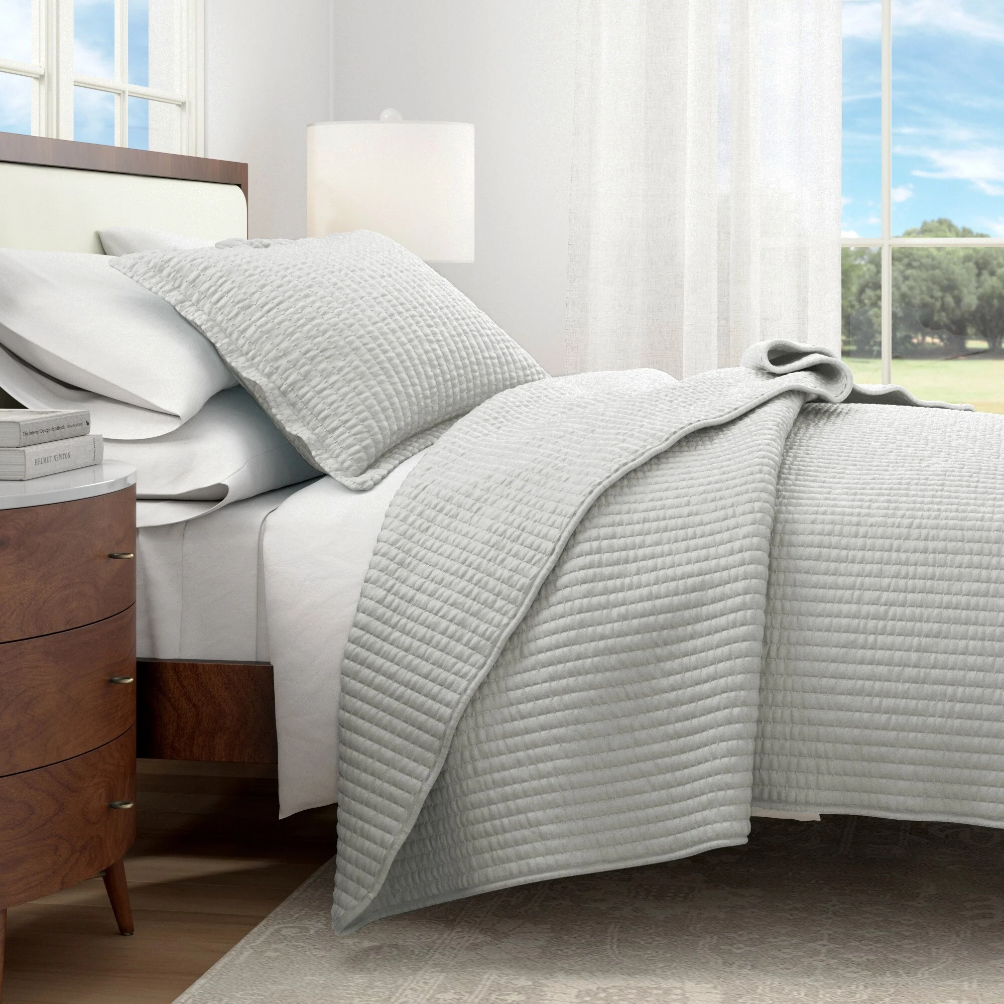 Linery & Co. Detailed Channel Stitch Microfiber Quilt Set With Shams.