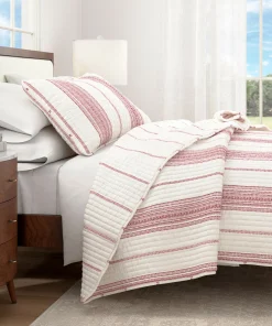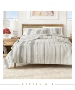 Linery & Co. Farmhouse Stripe Microfiber Quilt Set With Shams.