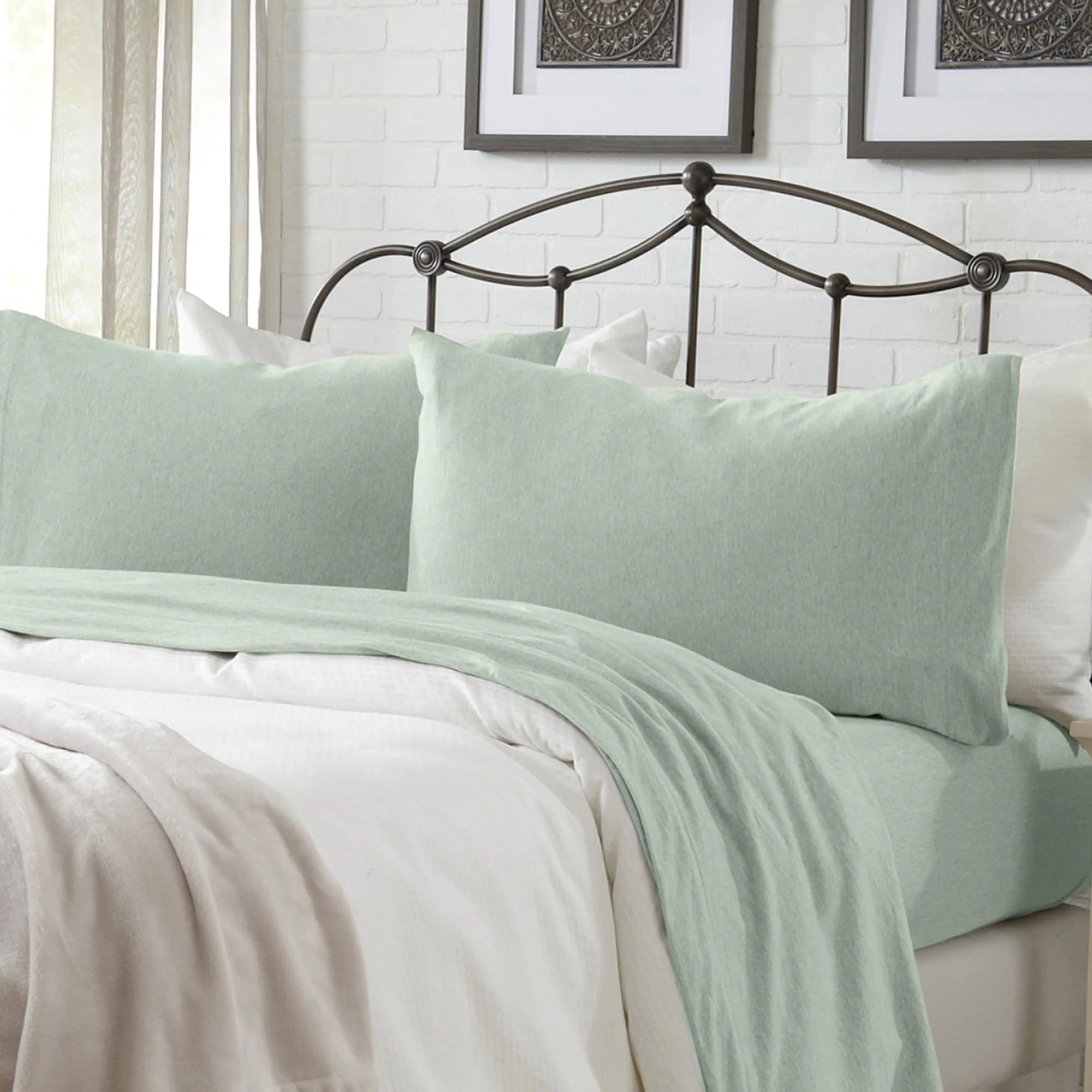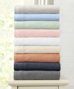 Soft, breathable, and effortlessly cozy, our heathered jersey knit sheets bring the comfort of your favorite t-shirt to bed. Made from a durable cotton-poly blend, they get softer with every wash. Naturally temperature-regulating for year-round comfort, with a relaxed, lived-in feel perfect for any bedroom.