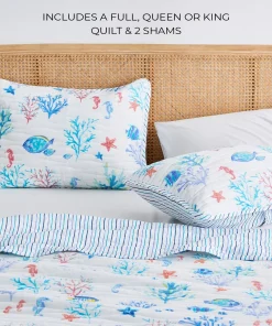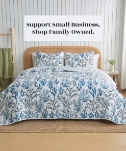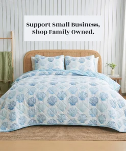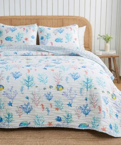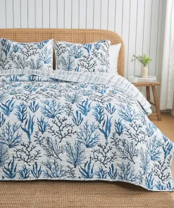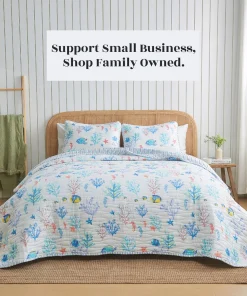 Create a bedroom oasis that will remind you of relaxing days at the beach. This quilt set features an ultra-soft, brushed microfiber feel that feels smooth against your skin. The lightweight warmth is perfect for the warmer nights in the summer, while still keeping you cozy all night long. The coastal-inspired print will match your nautical decor and refresh your bed styling for a new season.