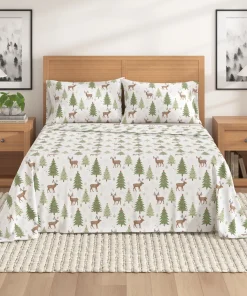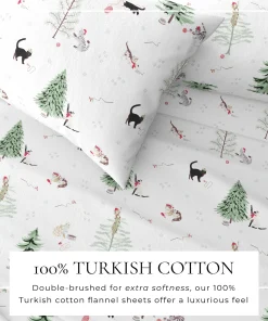 Linery & Co. Turkish Cotton Double-Brushed Christmas Flannel Bed Sheet Set