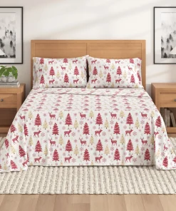 Add some holiday cheer to your bedroom this season. The charming, cheerful prints in this collection will brighten your decor while offering a luxuriously soft feel. You’ll be wrapped up in cozy warmth all holiday season. Add this flannel sheet to your bed set and get cozy.