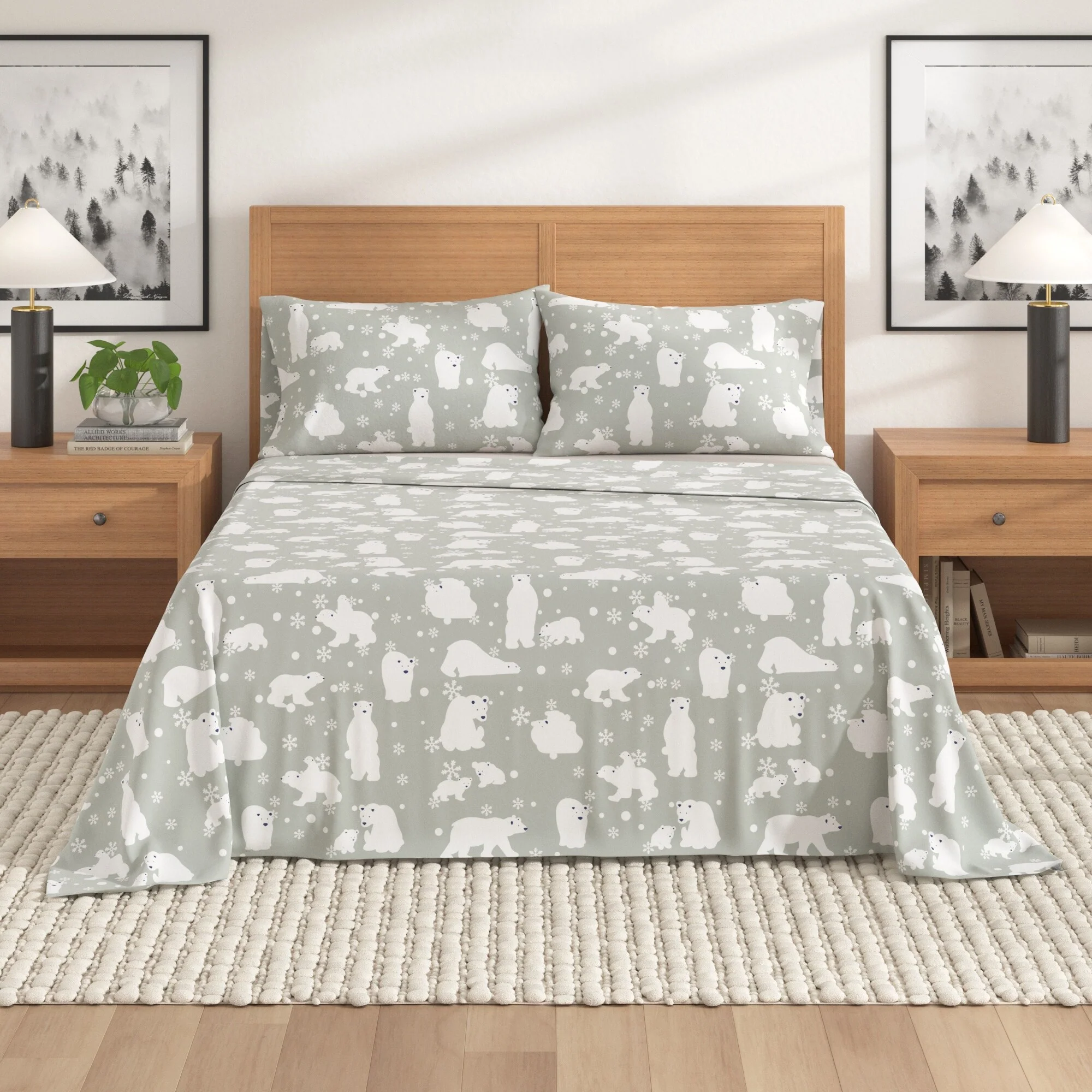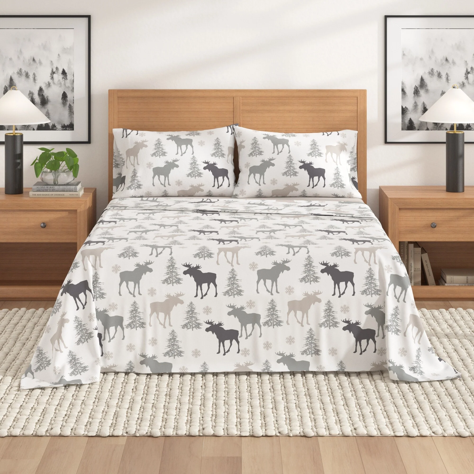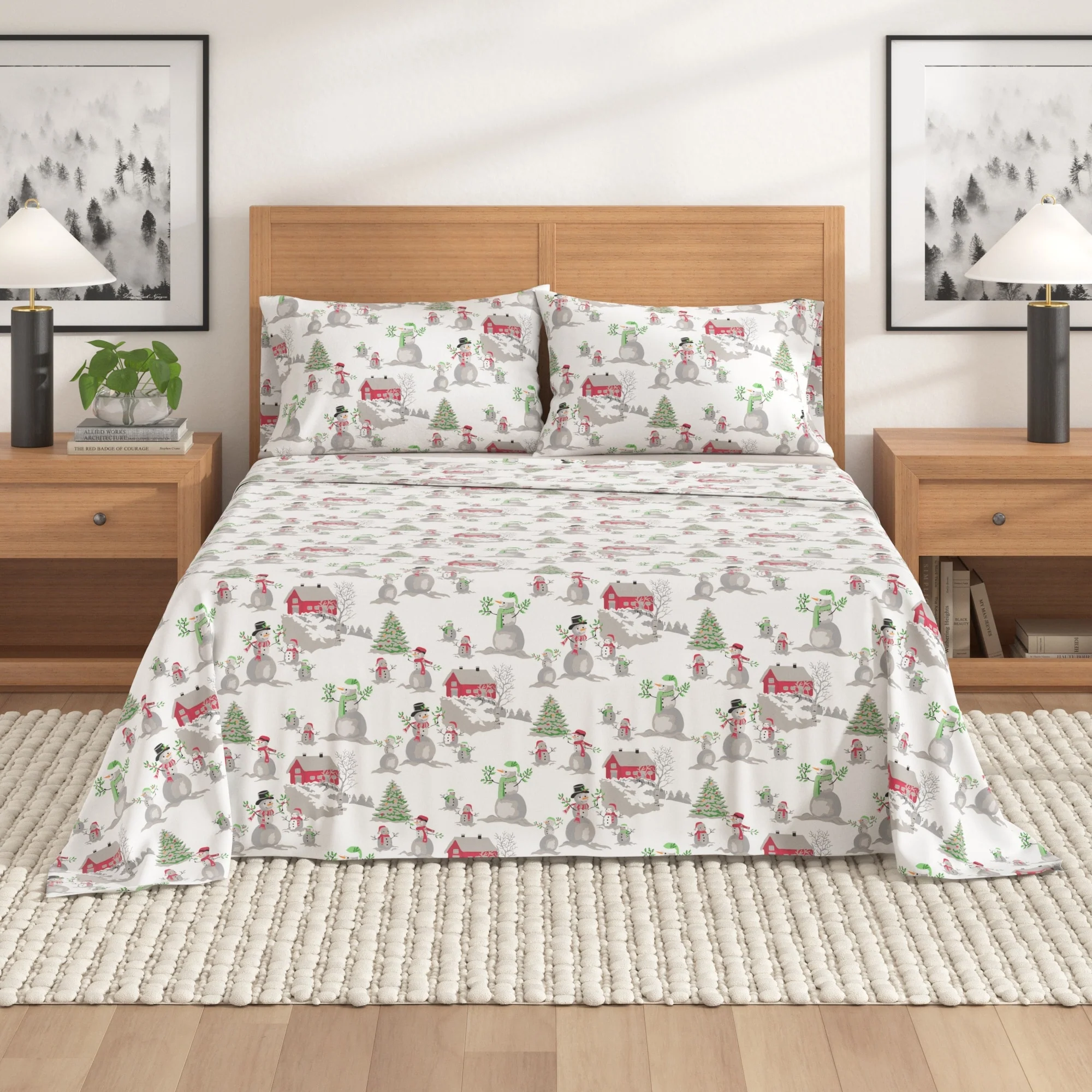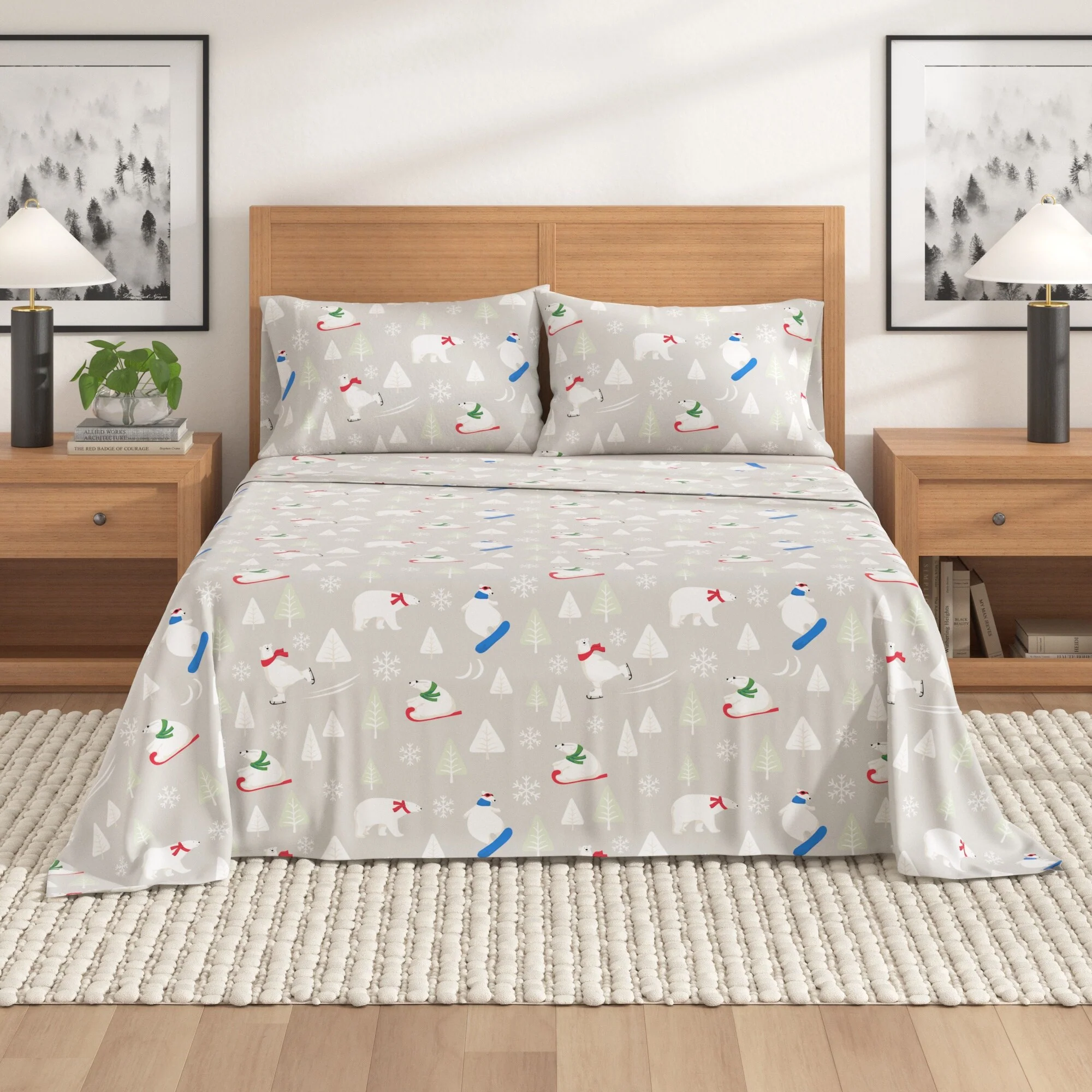 Linery & Co. Turkish Cotton Double-Brushed Christmas Flannel Bed Sheet Set