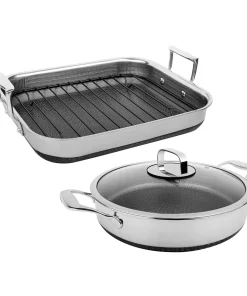Enhance your culinary capabilities with the DiamondClad Hybrid 4-Piece Cookware Set. This essential set includes a versatile Roaster with Basket and a 5QT Sauté Pan with Lid, offering everything you need to prepare a wide range of delicious meals. Whether you’re roasting, sautéing, or frying, this cookware set delivers superior performance and convenience.