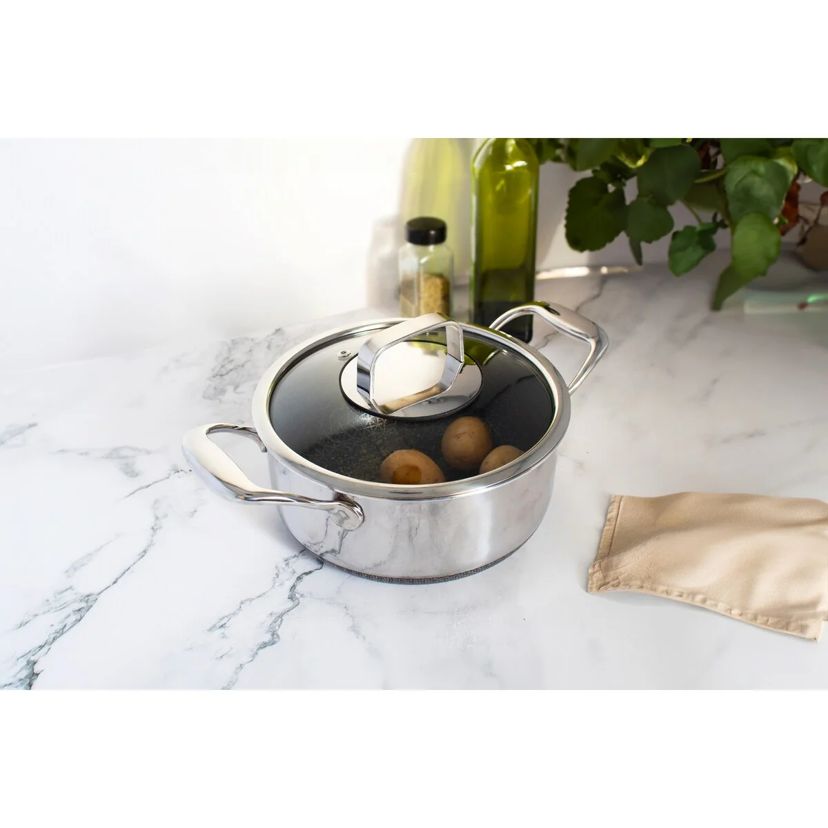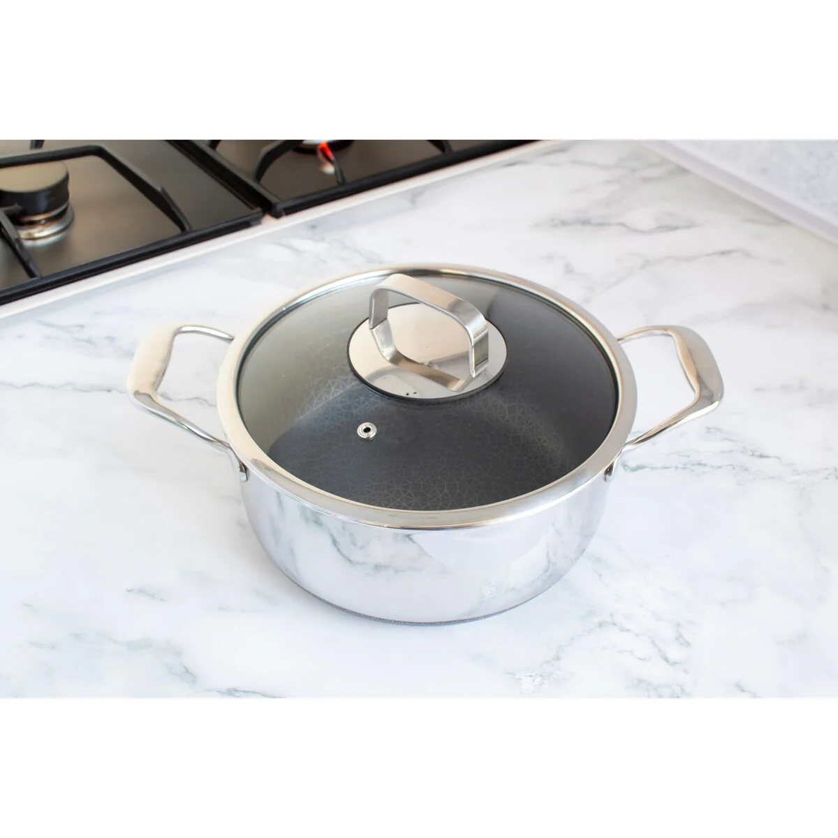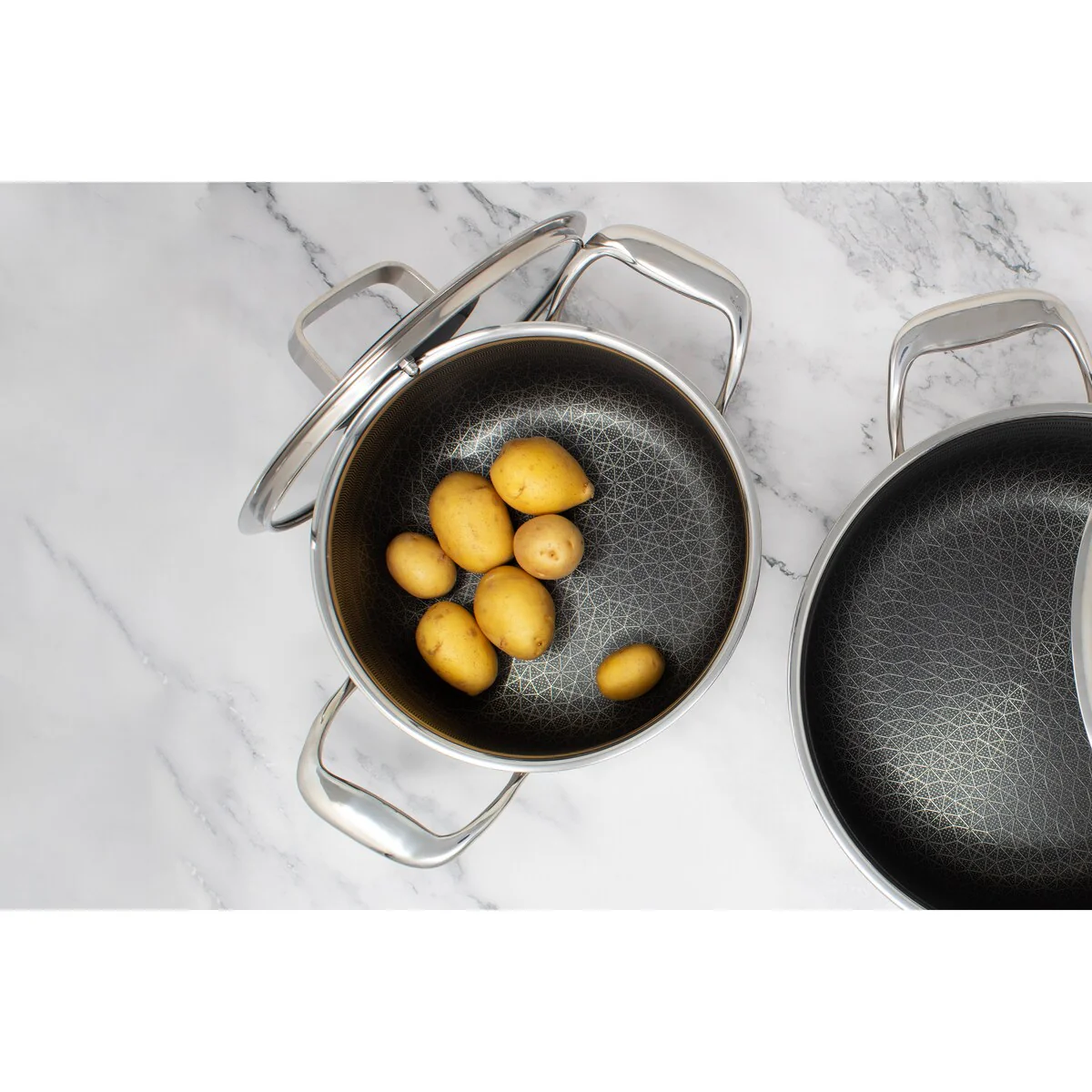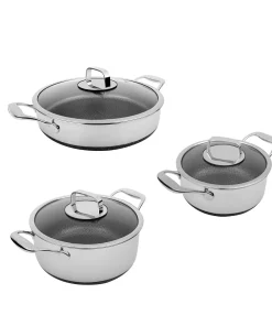 Upgrade your kitchen with the DiamondClad Hybrid Cookware Set, a versatile 6-piece collection that meets all your cooking needs. This set includes a 3-quart Pot with Lid, a 6-quart Pot with Lid, and a 5-quart Saute Pan with Lid, designed to deliver exceptional performance and convenience.