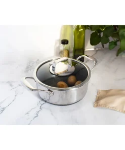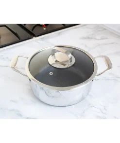 - 5-Quart Saute Pan with Lid: Designed for versatile cooking, from sautéing and searing to simmering. The lid controls splatters and helps maintain optimal cooking temperatures for delicious results.