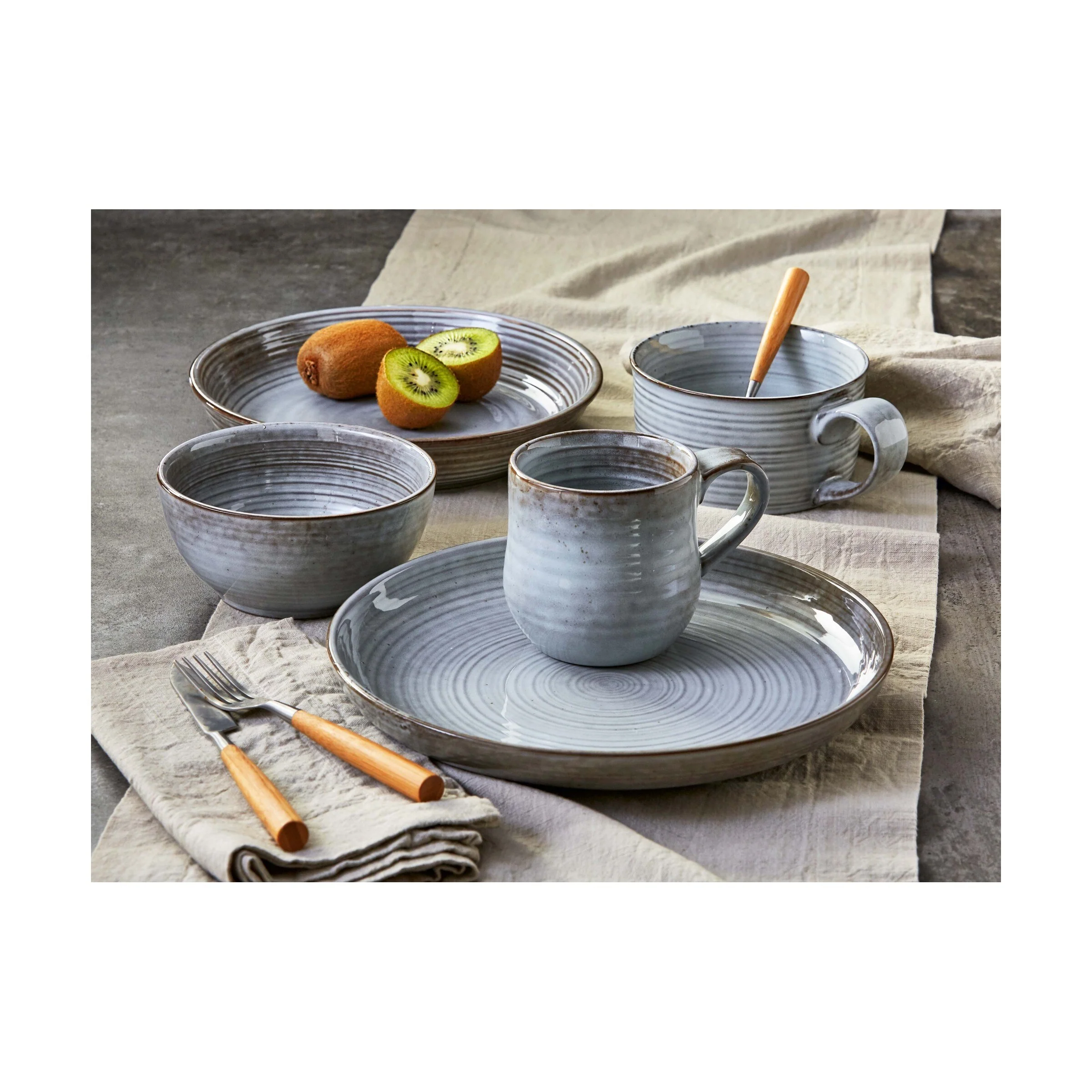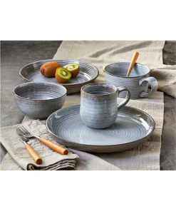 Organic reactive speckle glazed stoneware is a new way to set the table. Crafted by skilled artisans, the timeless beauty of the speckled glaze is created from the reaction of the clay and glazes to the fire in the kiln.