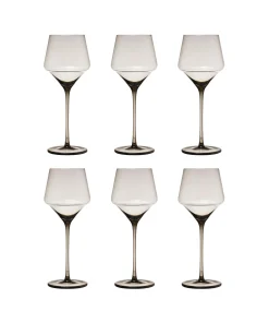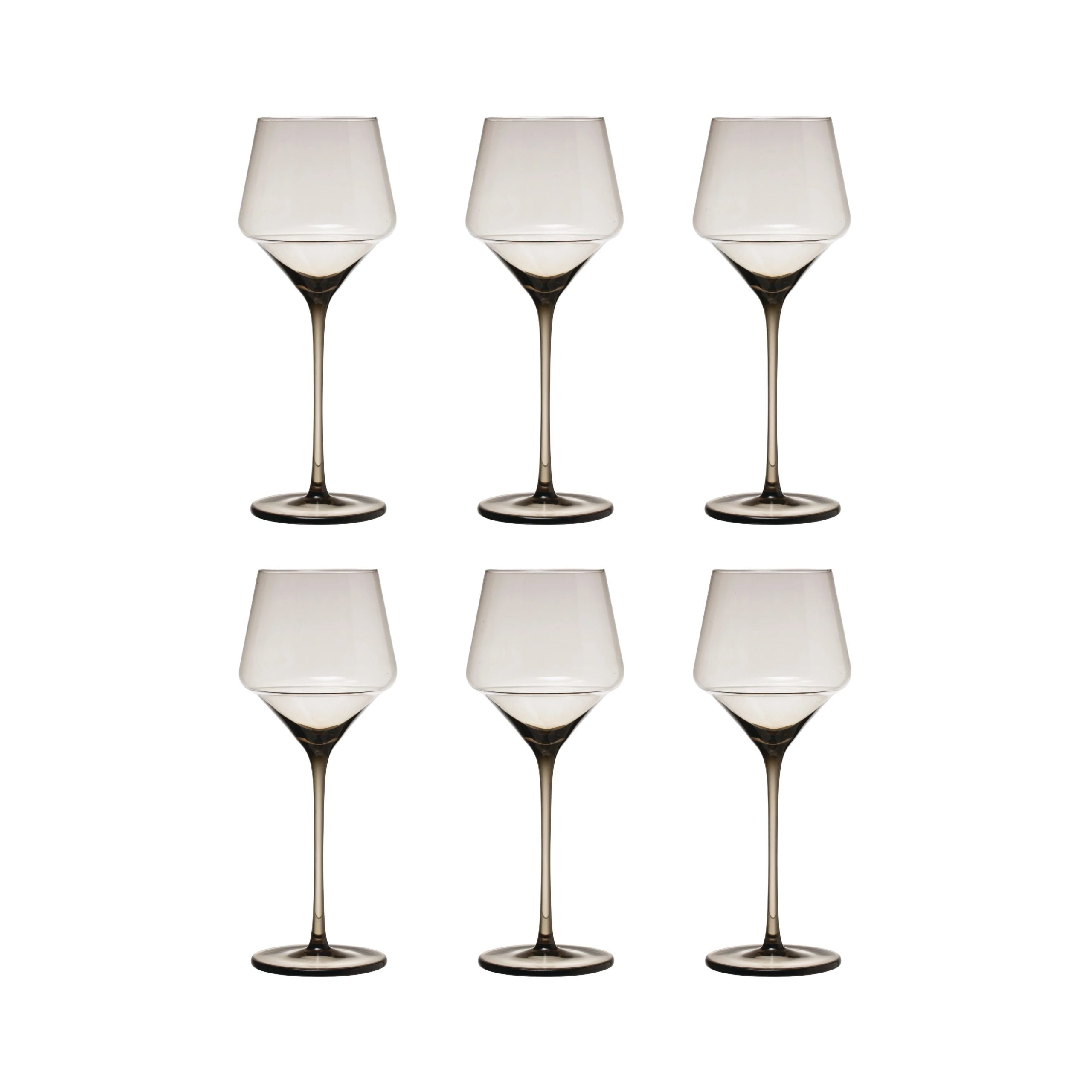 Long Stem Wine Glass Set with Smokey Grey Clear Glass Finish, Set of 6