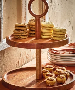 Create a stylish and functional centerpiece with this Loop 2-Tier Server. Made from acacia wood, this server features two tiers, perfect for displaying appetizers, desserts, or snacks.