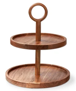 Create a stylish and functional centerpiece with this Loop 2-Tier Server. Made from acacia wood, this server features two tiers, perfect for displaying appetizers, desserts, or snacks.