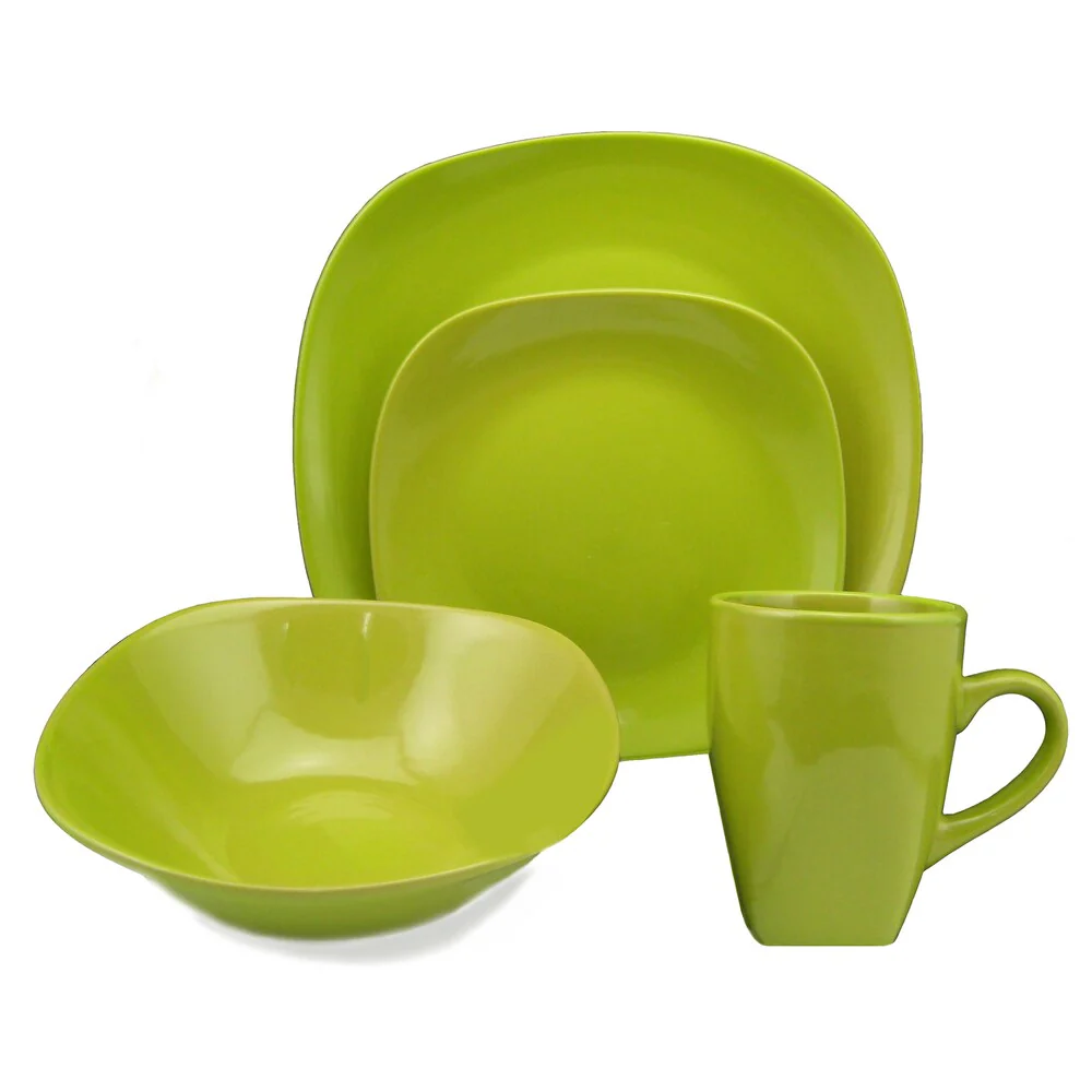 Add a charming element to your table setting with this 16-piecedinnerware set from Lorren Home Trend. This elegant and stylish sethighlights a vivid green color palette and a durable stonewareconstruction.