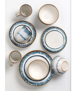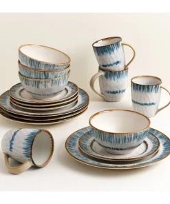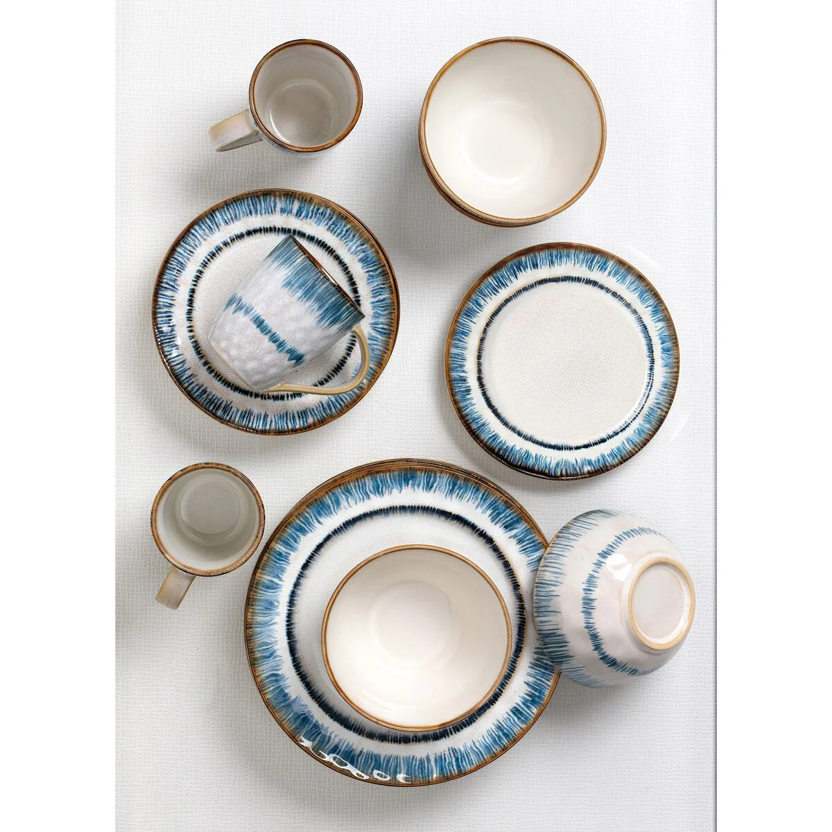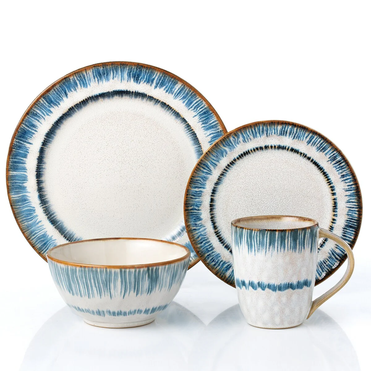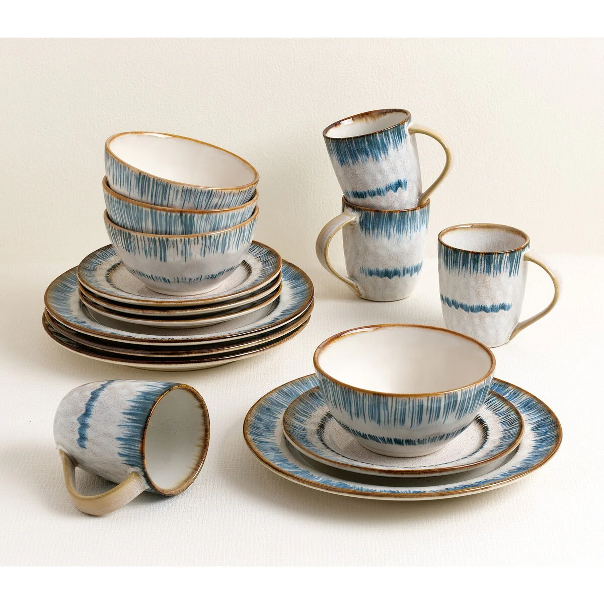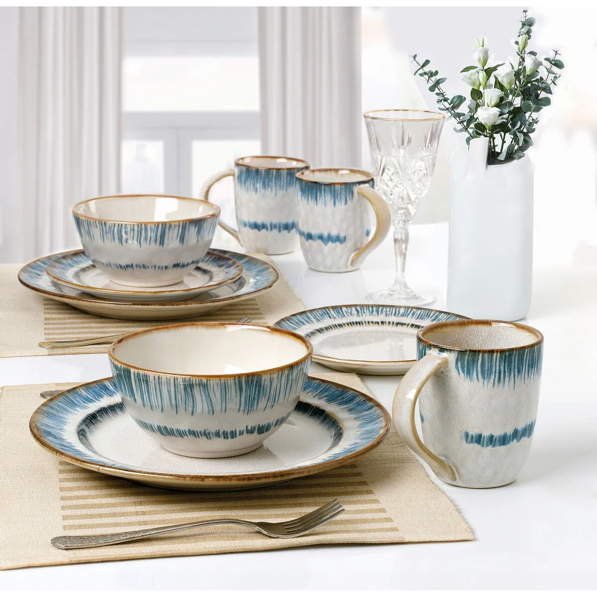 Lorren Home Trends 16 Piece Stoneware Set-Blue Swirl