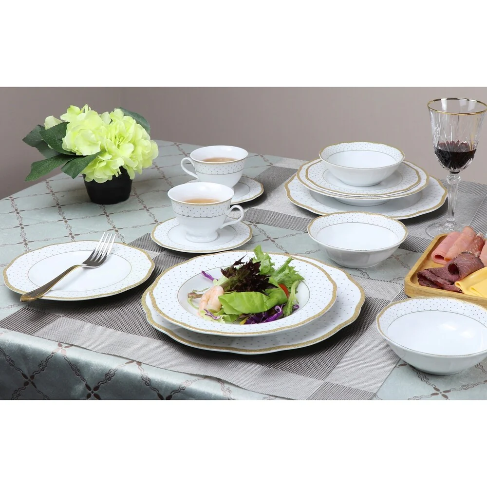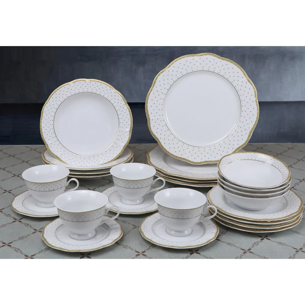 Lorren Home Trends 24 Piece Wavy Fine China Collection Gold Dot Dinnerware (Service for 4)