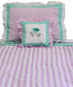 Lovebirds Twin Bedding Set features fresh colors in lavender and green in a popular argyle print. This set includes a reversible Comforter and one Pillow Sham.. Decorative PIllow Sold Seperately.