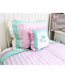 Lovebirds Twin Bedding Set features fresh colors in lavender and green in a popular argyle print. This set includes a reversible Comforter and one Pillow Sham.. Decorative PIllow Sold Seperately.